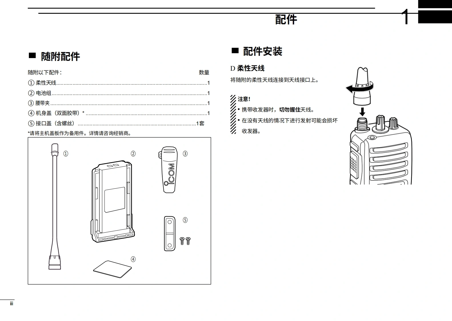 艾可慕IC-33GS使用操作说明书手册指南20260331中文版找手册网10天前发布关注私信3.34MB53页031艾可慕IC-33GS使用操作说明书手册指南20260331中文版此内容为付费资源,请付费后查看¥19¥21黄金会员免费钻石会员免费登录购买付费资源 第1页 / 共53页 第2页 / 共53页 第3页 / 共53页 第4页 / 共53页 第5页 / 共53页 第6页 / 共53页 第7页 / 共53页 第8页 / 共53页 第9页 / 共53页 第10页 / 共53页 试读已结束,还剩43页,您可下载完整版后进行离线阅读 THE END艾可慕 文本预览 COMBS1200Compatible使用说明书VHF收发机iF33GT/GSUHF收发机iF43GT/⊙SICOMicom Inc本设备符合FCC规则第15部分的规定。使用本设备须确保不会造成有害干扰P30Icom Inc. 查看更多 收起部分 喜欢就支持一下吧收藏