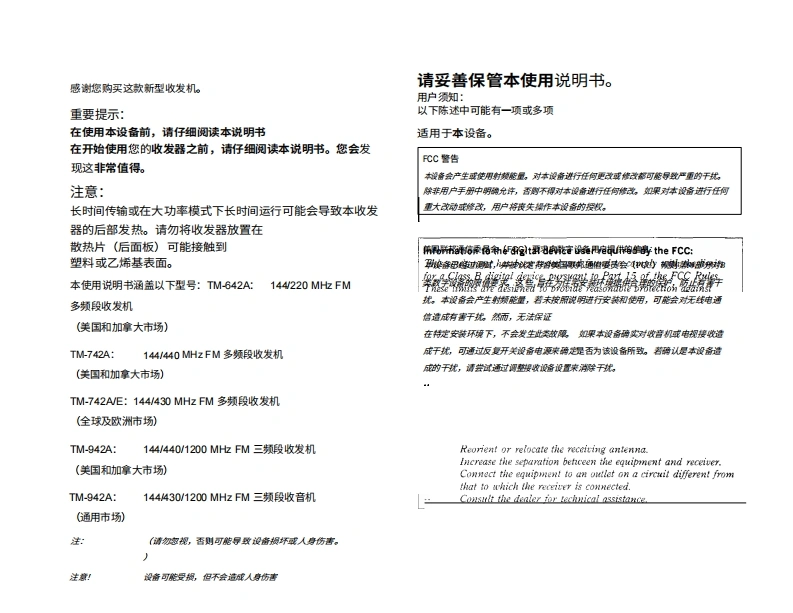 建武TM-642操作说明书手册中文版找手册网10天前发布关注私信16.96MB111页022建武TM-642操作说明书手册中文版此内容为付费资源,请付费后查看¥19¥21黄金会员免费钻石会员免费登录购买付费资源 第1页 / 共111页 第2页 / 共111页 第3页 / 共111页 第4页 / 共111页 第5页 / 共111页 第6页 / 共111页 第7页 / 共111页 第8页 / 共111页 第9页 / 共111页 第10页 / 共111页 试读已结束,还剩101页,您可下载完整版后进行离线阅读 THE END建武 文本预览 J444401200 MHz FM三频段对讲机J44/430/1200TM-942AKENWO44/440 MHz FM多频段机TM-742A4430 MHz FM多频段收发机TM-742A/E心642A使用说明书KENWOOD CORPORATION日本印刷B62-0287-70KPMU0)0WC)95121110967654 查看更多 收起部分 喜欢就支持一下吧收藏