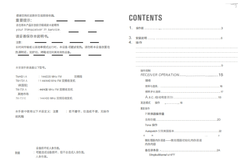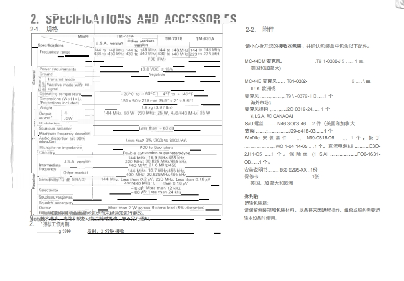 建武TM-731操作说明书手册中文版找手册网10天前发布关注私信3.95MB37页042建武TM-731操作说明书手册中文版此内容为付费资源,请付费后查看¥19¥21黄金会员免费钻石会员免费登录购买付费资源 第1页 / 共37页 第2页 / 共37页 第3页 / 共37页 第4页 / 共37页 第5页 / 共37页 第6页 / 共37页 第7页 / 共37页 第8页 / 共37页 第9页 / 共37页 第10页 / 共37页 试读已结束,还剩27页,您可下载完整版后进行离线阅读 THE END建武 文本预览 144220 MHz FM双频对讲机TM-631AJ44)440MH回复双频收发机KENWOODTM-731A144/430MHz FM DUAL BANDERTM-731ATM-731E说明书手册KENWOOD CORPORATIONCPRINTED IN JAPAN B50-8295-00(K.M.P.W)(T)80/12111098765432189/1211109B7654 查看更多 收起部分 喜欢就支持一下吧收藏