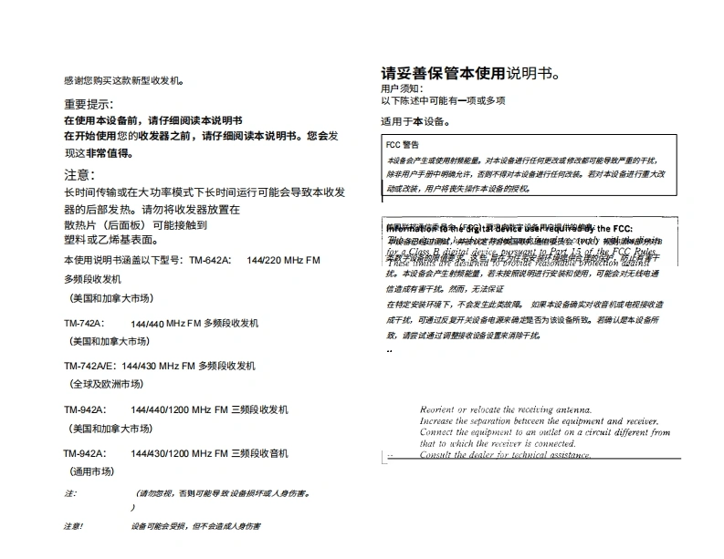 建武TM-742操作说明书手册中文版找手册网10天前发布关注私信16.94MB111页036建武TM-742操作说明书手册中文版此内容为付费资源,请付费后查看¥19¥21黄金会员免费钻石会员免费登录购买付费资源 第1页 / 共111页 第2页 / 共111页 第3页 / 共111页 第4页 / 共111页 第5页 / 共111页 第6页 / 共111页 第7页 / 共111页 第8页 / 共111页 第9页 / 共111页 第10页 / 共111页 试读已结束,还剩101页,您可下载完整版后进行离线阅读 THE END建武 文本预览 J444401200 MHz FM三频段对讲机J44/430/1200TM-942AKENWO44440 MHZ FM多TM-742A4/430 MHz FM多频段收发机TM-742A/E心642A使用说明书KENWOOD CORPORATION日本印刚B62-0287-70KPMU0)0WC)95121110967654 查看更多 收起部分 喜欢就支持一下吧收藏
