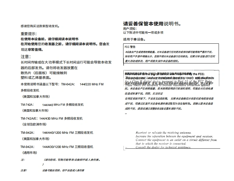 建武TM-942操作说明书手册中文版找手册网10天前发布关注私信16.93MB111页042建武TM-942操作说明书手册中文版此内容为付费资源,请付费后查看¥19¥21黄金会员免费钻石会员免费登录购买付费资源 第1页 / 共111页 第2页 / 共111页 第3页 / 共111页 第4页 / 共111页 第5页 / 共111页 第6页 / 共111页 第7页 / 共111页 第8页 / 共111页 第9页 / 共111页 第10页 / 共111页 试读已结束,还剩101页,您可下载完整版后进行离线阅读 THE END建武 文本预览 J444401200 MHz FM三频段对讲机J44/430/1200TM-942AKENWO44/440 MHz FM多频段机TM-742A4430 MHz FM多频段收发机TM-742A/E心642A使用说明书KENWOOD CORPORATION日本印刷B62-0287-70KPMU0)0WC)95121110967654 查看更多 收起部分 喜欢就支持一下吧收藏