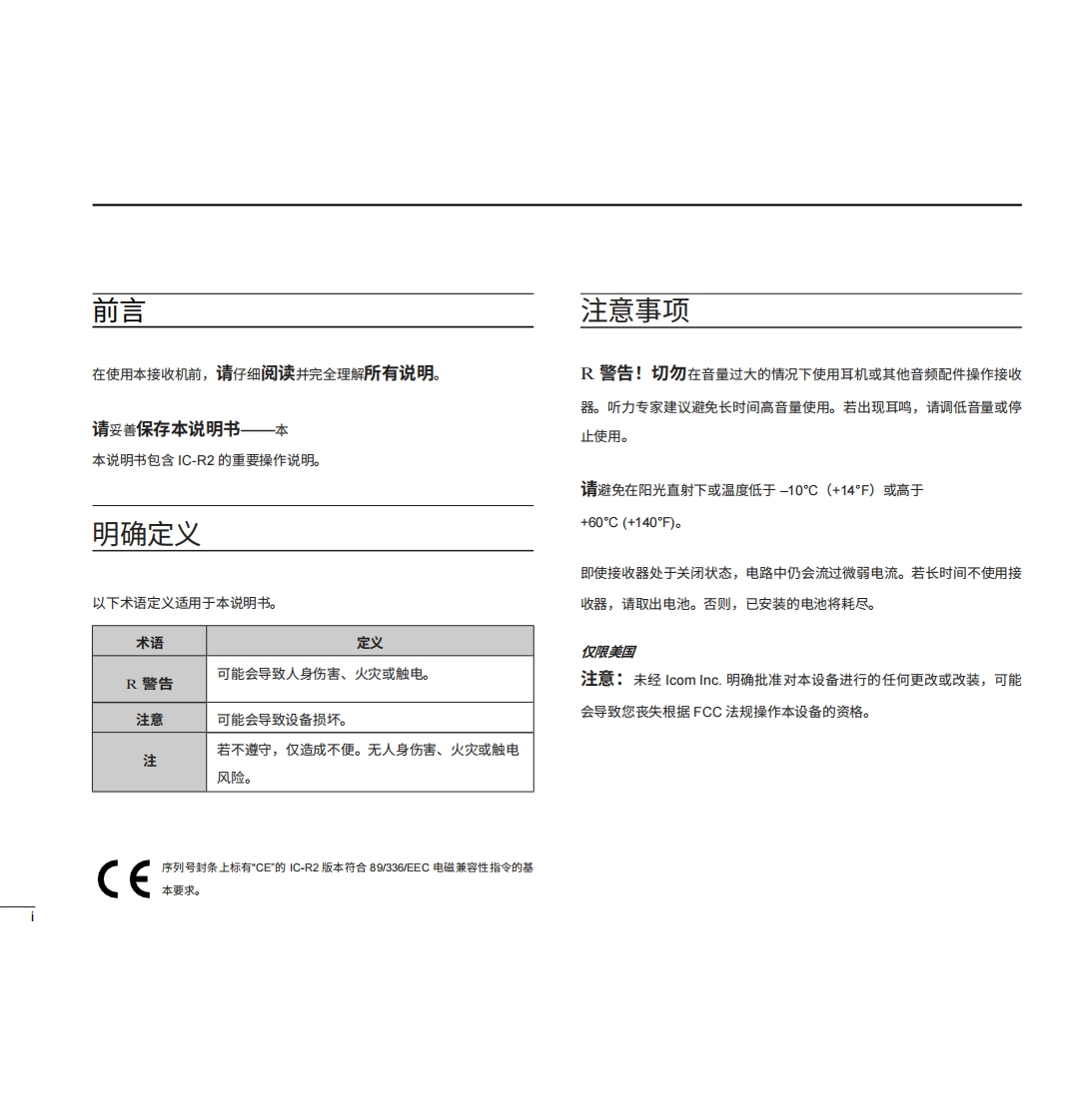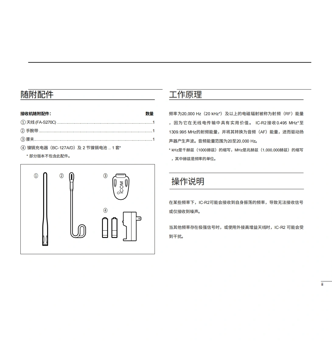 ICOM艾可慕IC-R2_user操作说明书手册20260331中文版找手册网8天前发布关注私信2.76MB40页045ICOM艾可慕IC-R2_user操作说明书手册20260331中文版此内容为付费资源,请付费后查看¥19¥21黄金会员免费钻石会员免费登录购买付费资源 第1页 / 共40页 第2页 / 共40页 第3页 / 共40页 第4页 / 共40页 第5页 / 共40页 第6页 / 共40页 第7页 / 共40页 第8页 / 共40页 第9页 / 共40页 第10页 / 共40页 试读已结束,还剩30页,您可下载完整版后进行离线阅读 THE END艾可慕 文本预览 icOM使用说明书通信接收器iR2本设备符合美国联邦通信委员会(FCC)规则第15部分的规定。其使用须遵守以下两项条件:()本设备不得造成有害干扰,(②本设备必须接受所接收到的任何干扰,包括可能导致意外运行的干扰。Icom Inc.解 查看更多 收起部分 喜欢就支持一下吧收藏