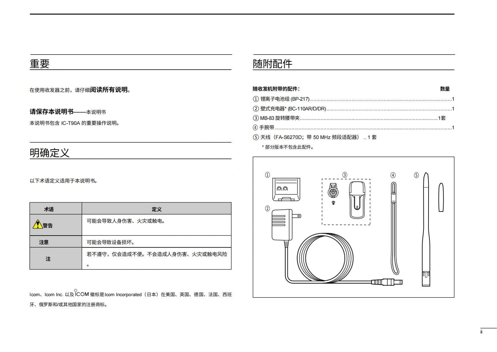 ICOM艾可慕IC-T90A_user操作说明书手册20260331中文版找手册网8天前发布关注私信7.89MB106页022ICOM艾可慕IC-T90A_user操作说明书手册20260331中文版此内容为付费资源,请付费后查看¥19¥21黄金会员免费钻石会员免费登录购买付费资源 第1页 / 共106页 第2页 / 共106页 第3页 / 共106页 第4页 / 共106页 第5页 / 共106页 第6页 / 共106页 第7页 / 共106页 第8页 / 共106页 第9页 / 共106页 第10页 / 共106页 试读已结束,还剩96页,您可下载完整版后进行离线阅读 THE END艾可慕 文本预览 icOM使用说明书多频段调频收发机iT9Downloaded byRadioAmateur.EUiCOM本设备符合FCC规则第15部分的规定。其使用须遵守以下两个条件:(1)本设备不得造成有害45.6009扇干扰;(2)本设备必须接受任何接收到的干扰,包括可能导致意外运行的干扰。MLLTIBAND TRANSCEIVER警告:根据FCC规则和联邦法律,禁止对本设备进行改装以接收蜂窝无线电话服务信号。1C-T90Icom Inc.品a9&®888☒悬R盟 查看更多 收起部分 喜欢就支持一下吧收藏