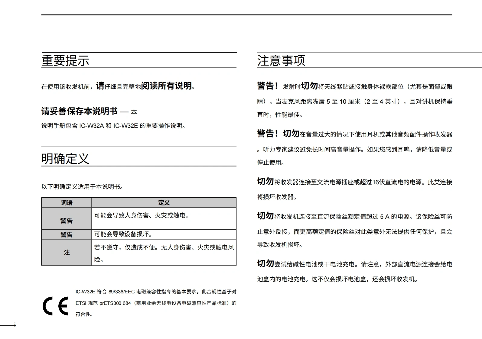 ICOM艾可慕IC-W32A_E_user操作说明书手册20260331中文版找手册网8天前发布关注私信3.07MB63页042ICOM艾可慕IC-W32A_E_user操作说明书手册20260331中文版此内容为付费资源,请付费后查看¥19¥21黄金会员免费钻石会员免费登录购买付费资源 第1页 / 共63页 第2页 / 共63页 第3页 / 共63页 第4页 / 共63页 第5页 / 共63页 第6页 / 共63页 第7页 / 共63页 第8页 / 共63页 第9页 / 共63页 第10页 / 共63页 试读已结束,还剩53页,您可下载完整版后进行离线阅读 THE END艾可慕 文本预览 ICOM使用说明书双频段调频收发机I8-w3呈本设备符合美国联邦通信委员会(FCC)规则第15部分的规定。使用本设备须遵守以下两项条件:(1)本设备不得造成有害干扰;(2)本设备必须接受所接收到的任何干扰,包括可能导致意外运行的干扰。由*业余无线电目录*下载Icom Inc.www.hamdirectory.info 查看更多 收起部分 喜欢就支持一下吧收藏
