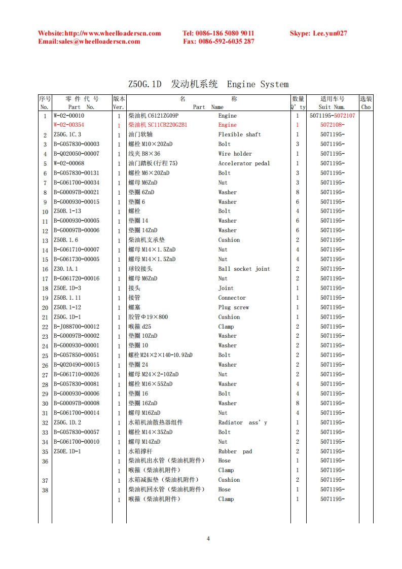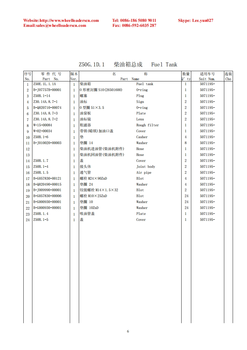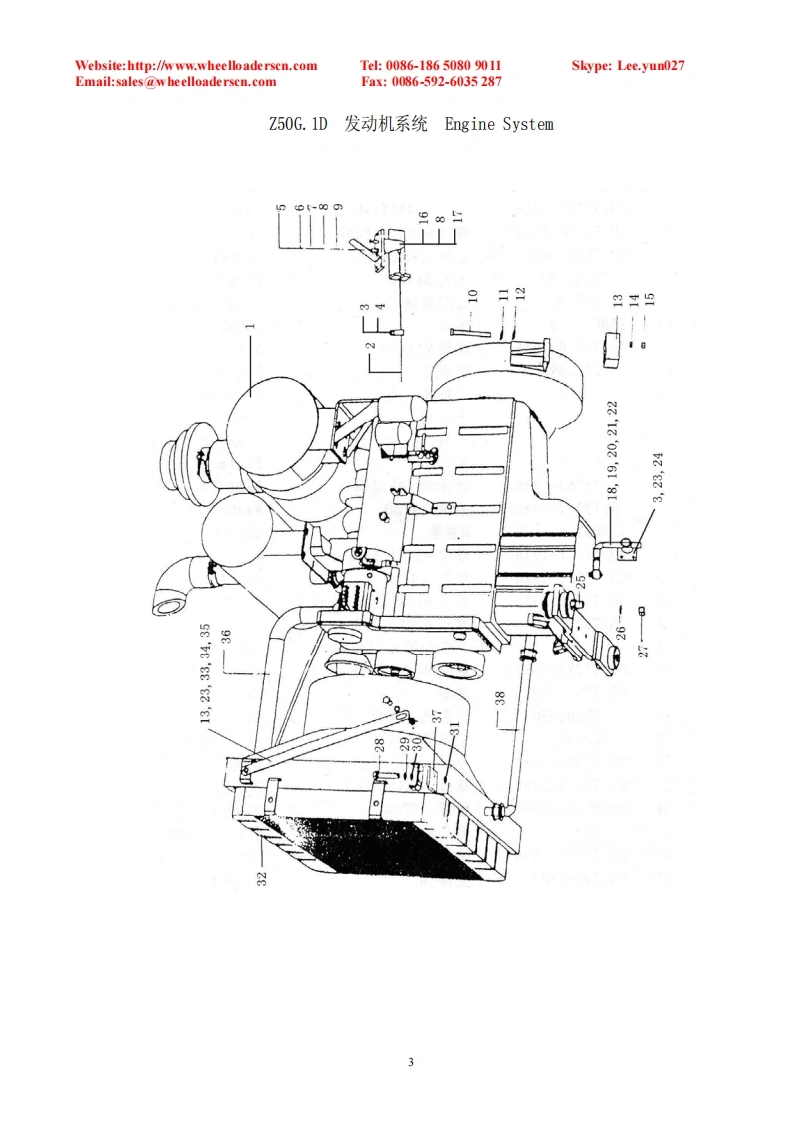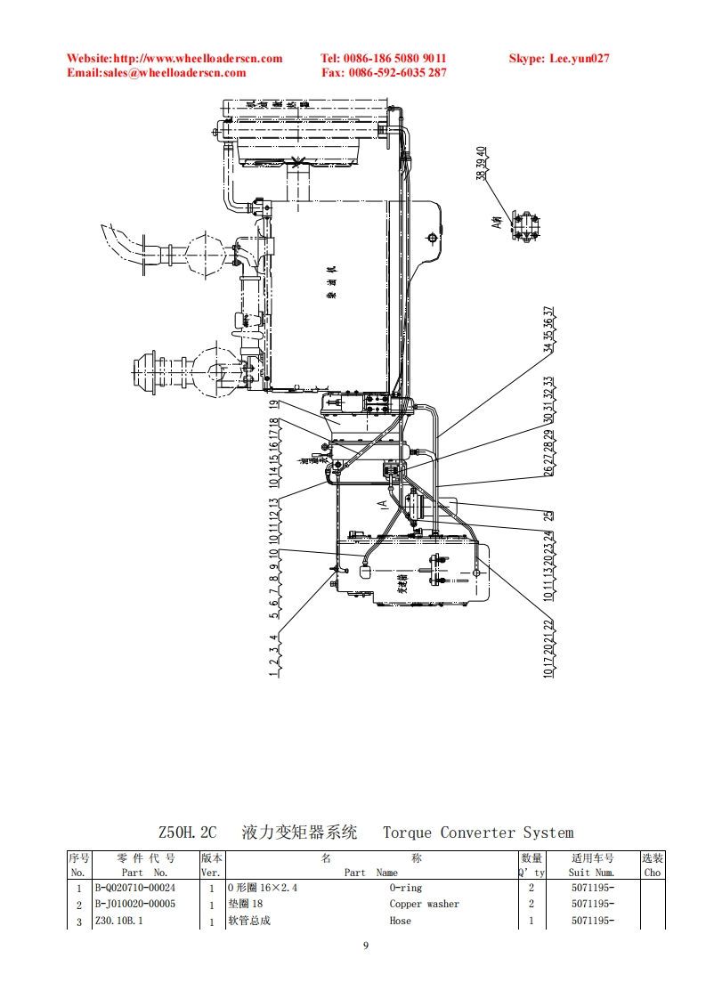Website:http://www.wheelloaderscn.comTel:0086-18650809011Skype:Lee.yun027Email:sales@wheelloaderscn.comFax:0086-592-6035287录ContentsZ50GlD发动机系统Engine System.3Z50G1D.1柴油箱总成Fuel Tank..5Z50H.2C液力变矩器系统Torque Converter System.....>Z50H.2C液力变矩器系统Torque Converter System.Z50H.2C.1(1)液力变矩器(一)Torque Converter(1).10Z50H2C.1(2)液力变矩器(二)Torque Converter(2)13Z50H.2C.1(3)液力变矩器(三)Torque Converter(3)15Z50H.2C.1(4)液力变矩器(四)Torque Converter(4).17Z50H.2C.1(5)液力变矩器(五)Torque Converter(5).19Z50E.2.3精滤清器Fine Filter..21Z50B.3主传动轴Main Drive Shaft.24Z50H.4B变速箱体及附件Transmission And Accessories.26Z50H.4.1变速箱输出轴总成Output Shaft Ass'y30Z50H.4.2变速箱二、三档总成2 nd And3 th Clutch Ass'y..32Z50H.4.3一档总成Ist Clutch Ass'y...34Z50H.4.4中间轴总成Center Shaft Ass'y..36Z50H.4.5倒档轴总成Reverse Shaft Ass'y.….39Z50H.4.6前进倒退档总成Forward And Reverse Clutch Ass'y41Z50H.4.7档位阀总成Clutch Valve Ass'y43Z50H.4.7.1分配阀总成Distributing Valve Ass'y45Z30.4.13档位阀总成Control Valve Ass'y47Z50E.5L前传动轴(一)Front Drive Shaft(1)49Z50E.5L前传动轴(二)Front Drive Shaft(2)51Z50H.6A前桥Front Axle.…54Z50H.8A后桥FrontAxle…56Z50H.6.1/8.1前/后桥主传动Front/Rear Axle Main Drive..59Z50B.6.2A车轮Wheel Ass'y64Z50E.7C后传动轴总成Rear Drive Shaft Ass'y..........................….66Website:http://www.wheelloaderscn.com