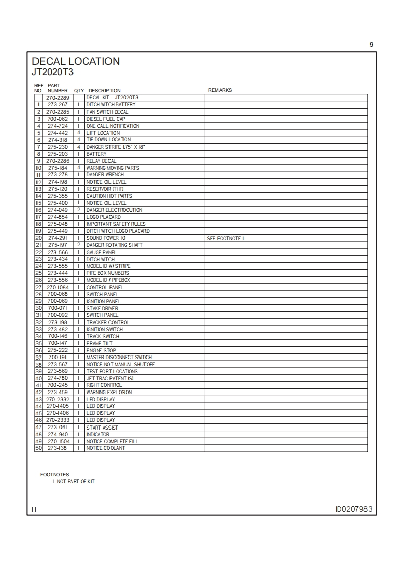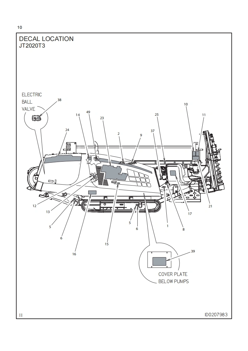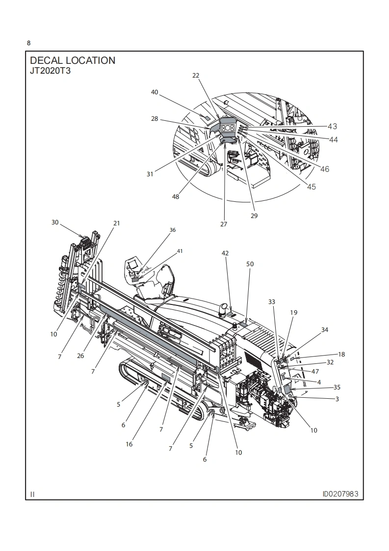 1Ditch WitchJT2020Tier 3ISSUE NO.03PL-05/11For replacement copy,order P/N 053-1264This product is covered by one or more of the following patents:UsB14.858,704:4.953,638:5,148,880:5,242,026:5,341887:5.490,569:5,684.466:5,713.4235.794.719:5.880.680:5.941.322:6,085.852:6,109,371:6,179.065:6,216,803:6,250,403;6,250,4046,290,606,6,311,790:6,411,094;6,543,551;6,550,547:6.672,409:6,739,413:6,761231;6,776,246:6.808.210:6,827.158:6,848.506:6.871.712:RE37.450:RE37.923:RE37.975:RE38.418AU689.533:706.544:718.034.755.862CA2,156,398:2.217.899DE69417019:69529634:29701406:EP0683845:0674093:0817901:0927892FR674.093GB2.309.239:2.312,006:EP674.093:EP846,841:JP3.458,247Other U.S.and foreign patents pendingThis manual contains information concerning the following models:JT2020 Tier 3 Directional Drilling SystemCopyright 2009,2011 by The Charles Machine Works,Inc.Ditch Witch.CMW.AutoCrowd.Jet Trac.Roto Witch.Subsite.Fluid Miser.PowerPipe,Super Witch,Pierce Arrow,Zahn,The Underground,and The Underground Authority Worldwide areregistered trademarks of The Charles Machine Works,Inc.1D0234453