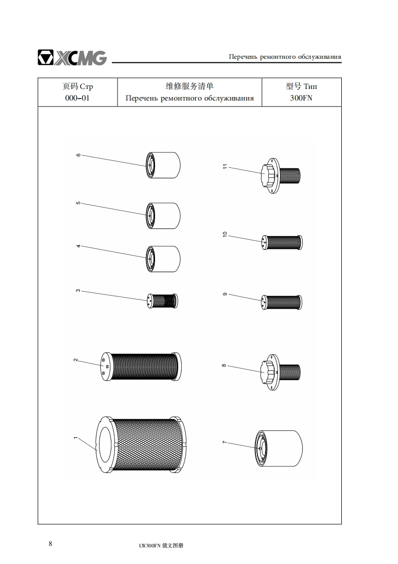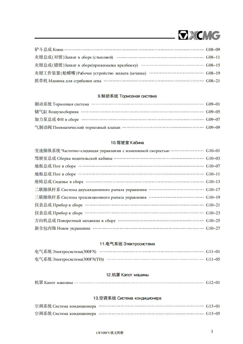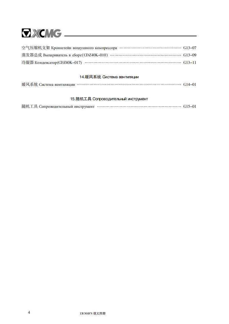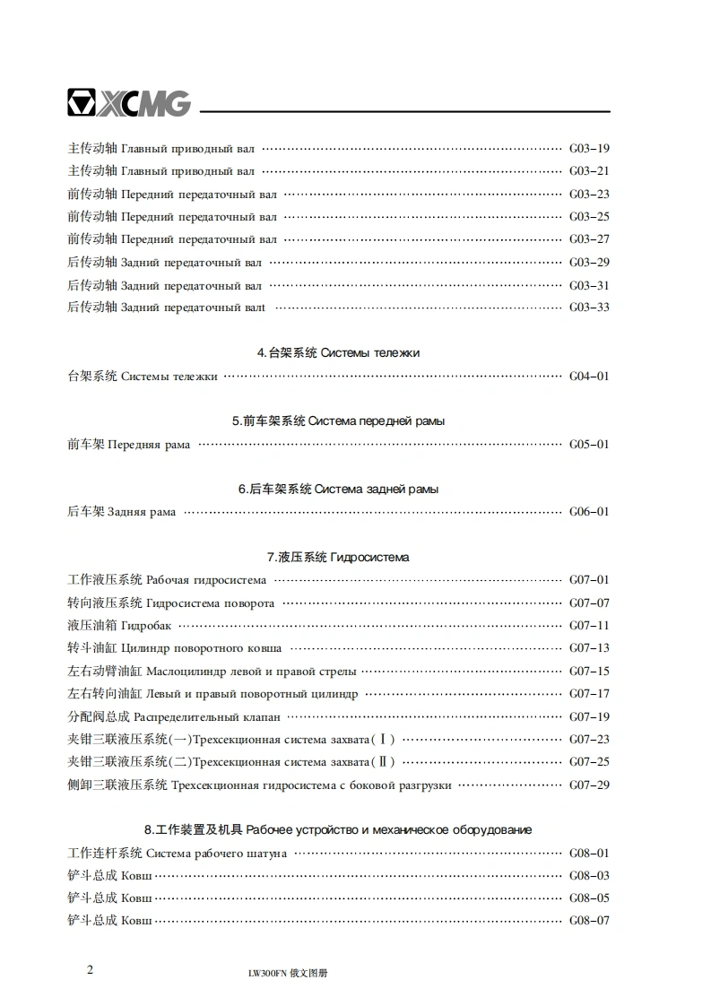 XCMG目录ConepxaHne维修服务清单1 epeyeHb peMoHTHoro o6 CyHBaHn+4…+444444+4…000-011.动力系统CnnoBa9 CnCTeMa发动机系统CncreMa ABraTe阴G01-01发动机系统Cucrema aBnrare阴…G01-05柴油箱总成H3 eIbHb6aKBc6ope…G01-072.双变系统CnCTeMa BOMHoro nepeknoeH变速箱变矩器系统CucTeMa ruporpaHc中opMaropa KI…G02-01变矩器总成KBC60p…G02-05滤清器HbTp…G02-11变速泵Hacoc nepeMembi ckope0CTH…G02-13减压阀总成KaΠaHn0HH米eH阴aBneHns B c6ope…G02-15变速箱箱体部件eTamb Kopny0KT…G02-17变速箱输人轴总成BxomHont Ban KIIII B c6ope…G02-23变速箱倒档轴总成.Ban nepena43 aHeroxona KIΠBc6ope…G02-27变速箱中间轴总成pomexyTo Hblit Ban KIIII B a6ope…G02-29变速箱输出轴总成B6 xomHon Ban KIΠBc6ope…G02-31变速箱手制动总成PyHont ToPMO3KBc6opeG02-33变速箱操纵阀总成Kanan ynpaweHna KIlΠBc6ope…G02-35变速箱高低档拨叉机构BMIo9 b Mexamn3 4 BbIcOKo H3 on nepena KIIII·G02-37高低速操纵ynpannenne c60 bIo Mao CKOPOCTbI0.G02-393.驱动桥系统OncTeMa Beny山ero MoCTa驱动桥系统CncreMa Beayuer0 MOCTaG03-01轮辋体总成Kopmyc o6 ona koneca B c6ope…G03-03桥总成M0cTBc60pe…G03-05主减速器总成[aBHblnt penykTop B c6ope…G03-07差速器总成H中中epeHuan B c60pe…G03-11轮边减速器总成SoproBoi peaykrop B c6opeG03-13制动器总成T0pM03BC60pe…G03-15传动轴总成lepenaroumb BaI B c6opeG03-17LW30OFN俄文图册1