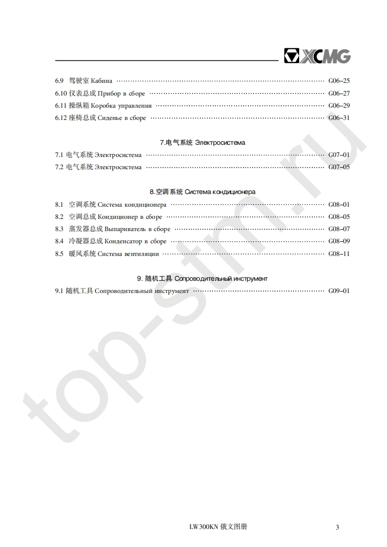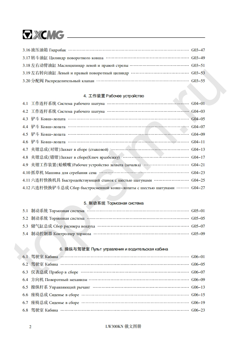XCMG LW300KNXCMG目录Contents1.动力与传动系统CncTeMa3 Hepmn n nepenal.l发a动机系统CcreMa aBrarens…G01-0]12撚油箱T0 BHb6aK…G01-051.3变速箱系统CHcTeMa Kopo6 kn nepenaG01-07l.4驱动桥系统CucTema Beryuter0 MocTa…G01-111.5后桥总成3aIiM0cTBc60pe…C01-131.6前桥总成epenmi M0CT…G01-152.车架与附件PaMa n npMHanne米HOCTb2.1台架系统CHCTeMbl TeexKH…G02-0122前车架系统CucreMa nepe Hei paMbl…G02-0523后车架系统CHcTeMa3 aHent pambl…G02-092.4发动机罩Kanor ABwrarena…G02-1325配重K0rppy3…G02-153.液压系统「pocncTeMa3.l工作液压系统(一)Pa6 ouas rapocncreMa(I)G03-013.2工作液压系统(二)Pa6 ouas rapocncTeMa()…G03-053.3转向液压系统「p0 cTeMa noB0p0T阳…G03-093.4集中测压系统CHcTeMa nemrpam3 OBaHHOrO H3 Mepenna HaBnemns·G03-1335液压油箱Hp06aK…G03-153.6转斗油缸山UHHAP HOB0p0TH0r0K0Ba…G03-173.7左右动臂油缸Macnouap neBoi n npaBoit crpenbl·G03-193.8左右转向油缸JeBbint H npaBb noBop0 THEIR LWIHHAPG03-213.9分配阀PacnpenemrenbHb knanaH…G03-233.10工作液压系统(一)Pa6 ouas rapocncTeMa(I)…G03-273.l1工作液压系统(二)Pa6o4 as rHapocHcreMa()…G03-313.12三联液压系统TpexcekuoHHas rpaBmecka cncTeMa…C03-353.l3转向液压系统p0 CcTeMa noBop0Ta…G03-373.14先导液压系统CepB0-Tp0 cHcTeMa…G03-413.l5集中测压系统CcTeMa neHTpar30 BAHHOrO H3 Mepenna aBnennal·G03-45LW300KN俄文图册1