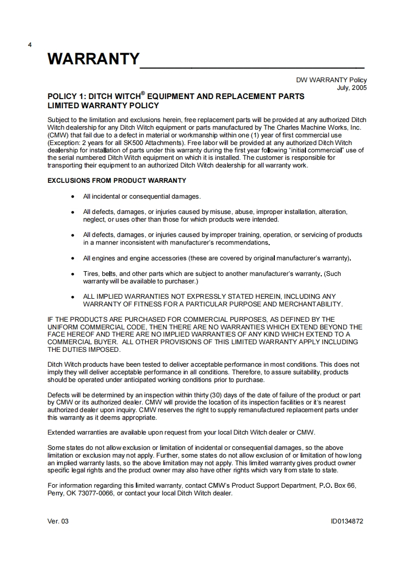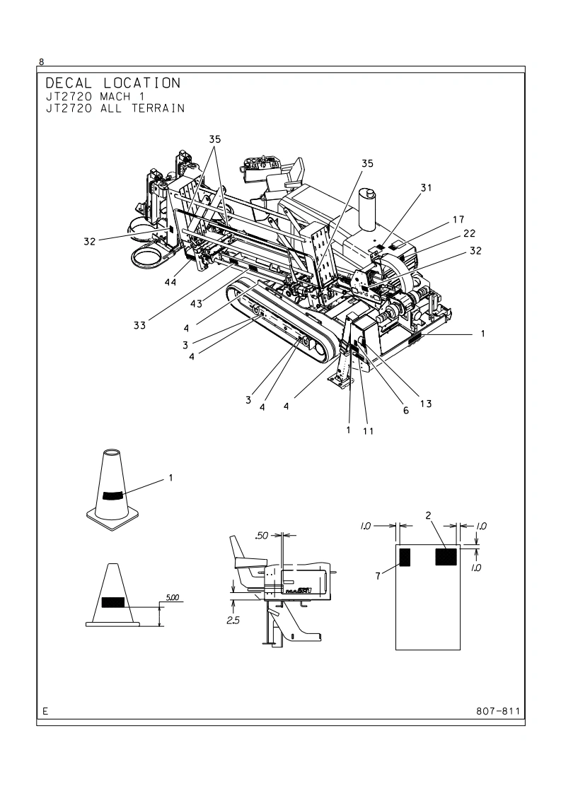 1Ditch WitchJT2720 Mach 1All TerrainISSUE NO.12PL-07/11For Replacement Copy Order P/N 053-081This product is covered by one or more of the following patents:USB14,858,704;4,953,638:5,148,880:5,242,026:5,341,887;5,490,569:5,684,466;5,713,423,5.794,719:5.880.680:5.941.322:6.085852:6,109.371:6.179.065:6216,803:6,250.403:6,250.404:6,290,606:6,311,790:6.411,094;6,543,551:6,550,547:6.672.409:6.739.413:6,776246:6.808210:6,827,158:RE37.450:RE37.923:RE37.975:RE38.418AU689,533:706,544:718,034,755,862CA2.156.398FR674.093DE69417019:69529634:29701406EP0683845:0674093:0817901:0846841GB2,209239:2,312,006:EP674,093:EP846,841JP3.458.247Other U.S.and foreign patents pendingThis manual contains information concerning the following models:JT2720 Mach 1 All Terrain Directional Drilling SystemCopyright 2004,2005,2006,2007,2008,2011 by The Charles Machine Works,Inc.Ditch Witch.CMW.AutoCrowd,Jet Trac.Roto Witch.Subsite,Fluid Miser.PowerPipe,Super Witch,Pierce Arrow,The Underground,The Underground Authority Worldwide,and Zahn areregistered trademarks of The Charles Machine Works,Inc.1D0134854