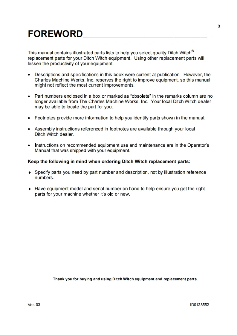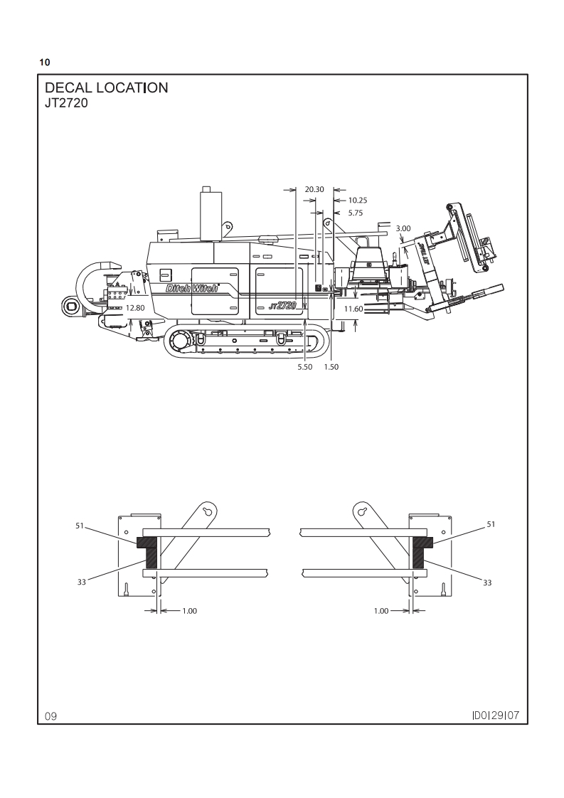 1Ditch WitchJT2720ISSUE NO.09PL-05/12For Replacement Copy Order P/N 053-471This product is covered by one or more of the following patents:US4,953,638:5,148,880:5,242,026;5,341,887:5,490,569:5.,684,466,5,713,423,5,740,703;5,758,553:5.794.719:5.880.680:5.941.322:6.085,852C1:6,109.371:6.179.065:6.216.803:6250.403:6,250.404:6,290,606:6,311,790:6,411,094:6,543.551:6,550,547:6,672,409:6,739,413,6,761,231;6,776,246:6.808.210:6,827.158:6848.506:6,871.712:6,896,077:7.000,710:7011.166:7.013.990:7.,018,1647,025,152:7,038.454:7,111,693:7,150,331:RE37.450:RE37,923:RE37,975:RE38.418AU689,533,706,544;718,034,755,862CA2.156.398:2.217.899FR674.093DE69417019:69529634:69728716:EP0927892:1466068GB2,312,006;2,418,553:EP674,093:EP817,901;EP846,841;EP927,892JP3.458.247Other U.S.and foreign patents pendingThis manual contains information concerning the following modelsJT2720 Directional Drilling SystemCopyright 2004,2006,2007,2008,2012 by The Charles Machine Works,Inc.Ditch Witch.CMW.AutoCrowd,Jet Trac.Roto Witch.Subsite.Fluid Miser.PowerPipe,Super Witch,Pierce Arrow,Zahn,The Underground,and The Underground Authority Worldwide areregistered trademarks of The Charles Machine Works,Inc.