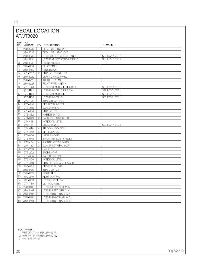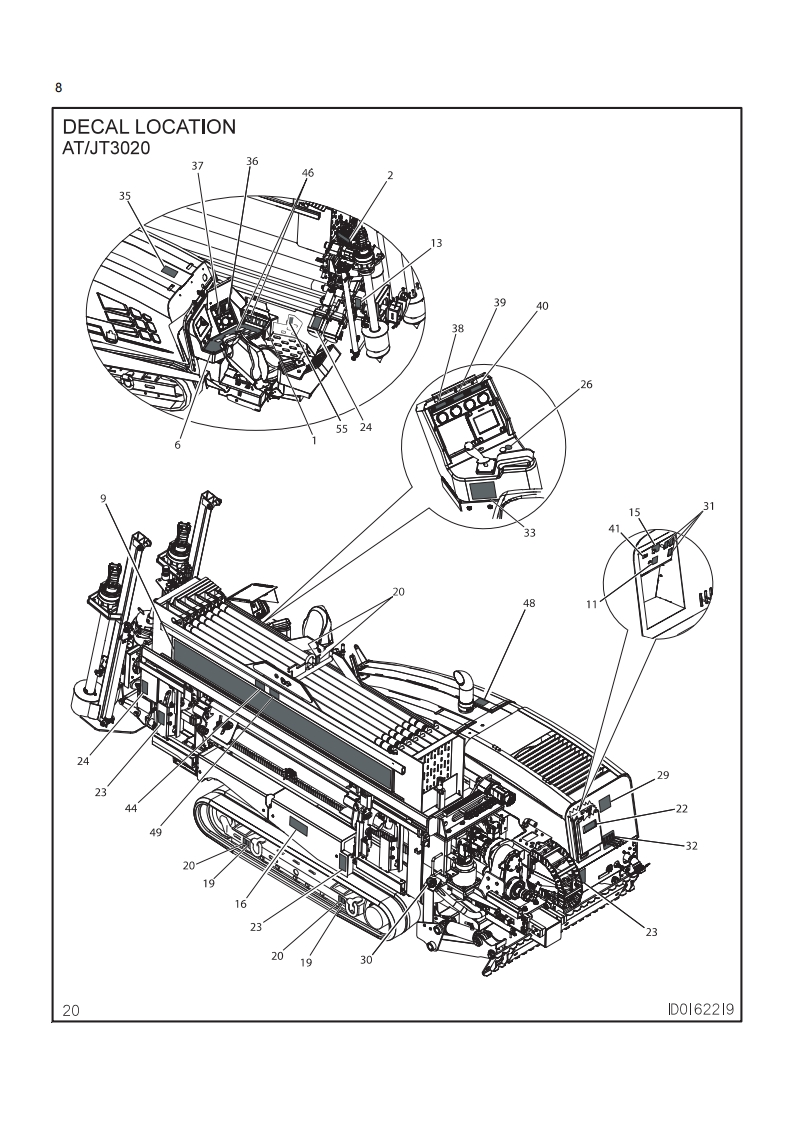 1Ditch WitchJT3020 Mach 1All Terrain Tier 31 SSUE N0.10PL-06/11For Replacement Copy Order P/N 053-1149This product is covered by one or more of the following patents:US4,953,638;5,148,880;5,242,026;5,341,887;5,490,569;5,684,466;5,713,423,5,740,703;5,758,553:5,794,719:5,880,680:5,941,322:6,085,852C1:6,109,371:6,179,065:6,216.803:6,250,403;6,250,404;6,290,606:6,311,790;6,411,094;6,543,551;6,550,547;6,672,4096,739,413;6,761,231;6,776,246;6,808,210;6,827,158;6,848,506;6,871,712;6,896,0777,000,710:7011,166;7.013.990:7,018,164;7,025,152:7,038,454:7,111.693:7,150,331:RE37,450:RE37,923:RE37,975;RE38,418AU689,533:706,544:718,034,755,862CA2.156.398:2.217.899FR674.093DE69417019;69529634;69728716:EP0927892:1466068GB2,312,006;2,418,553;EP674,093;EP817,901;EP846,841;EP927,892JP3.458,247Other U.S.and foreign patents pendingThis manual contains information concerning the following models:JT3020 Mach 1 All Terrain Tier 3 Directional Drilling SystemCopyright 2007,2008,2009,2011 by The Charles Machine Works,Inc.Ditch Witch.CMW.AutoCrowd,Jet Trac.Roto Witch.Subsite,Fluid Miser,Power Pipe.Super Witch,Pierce Arrow,Zahn,The Underground,and The Underground Authority Worldwide areregistered trademarks of The Charles Machine Works,Inc.1D0184852