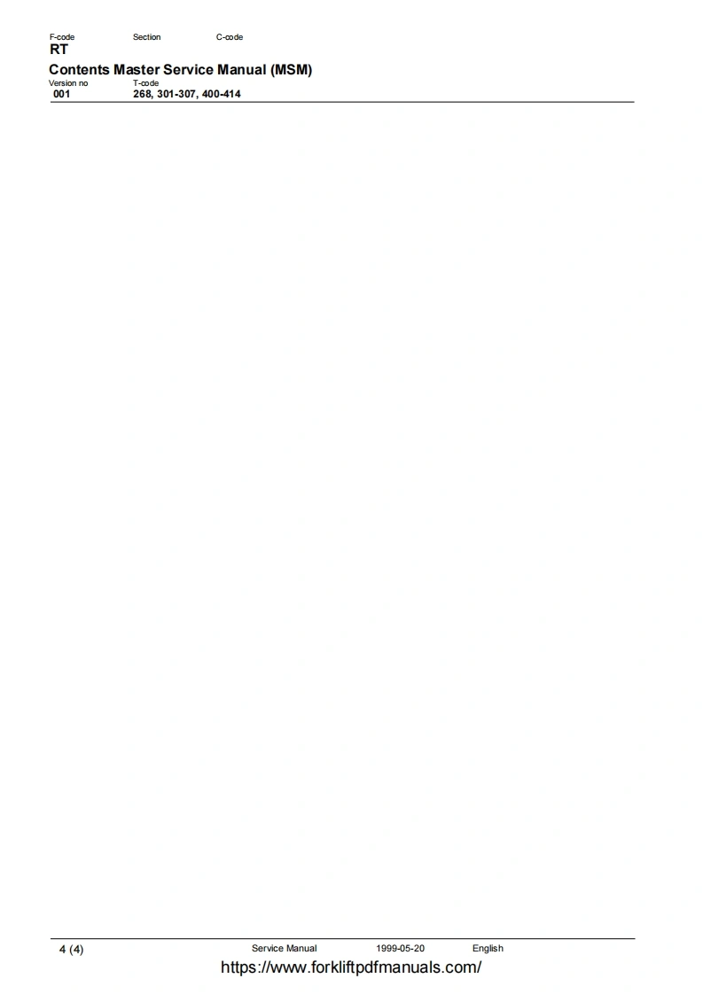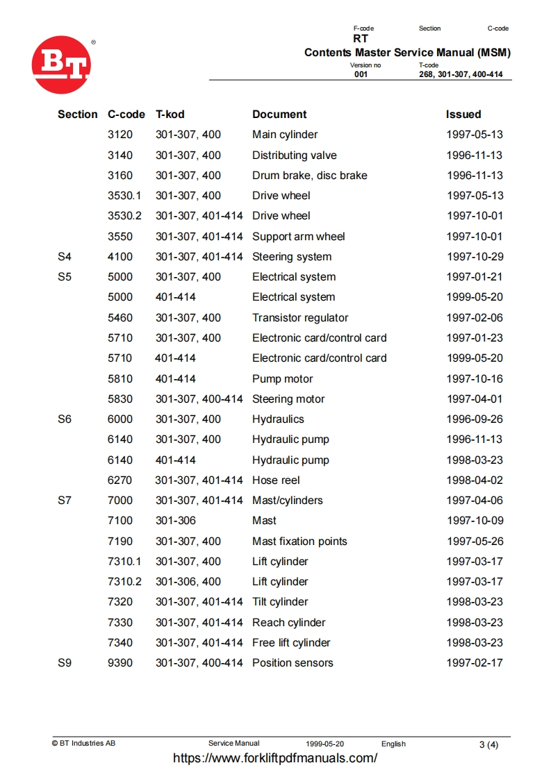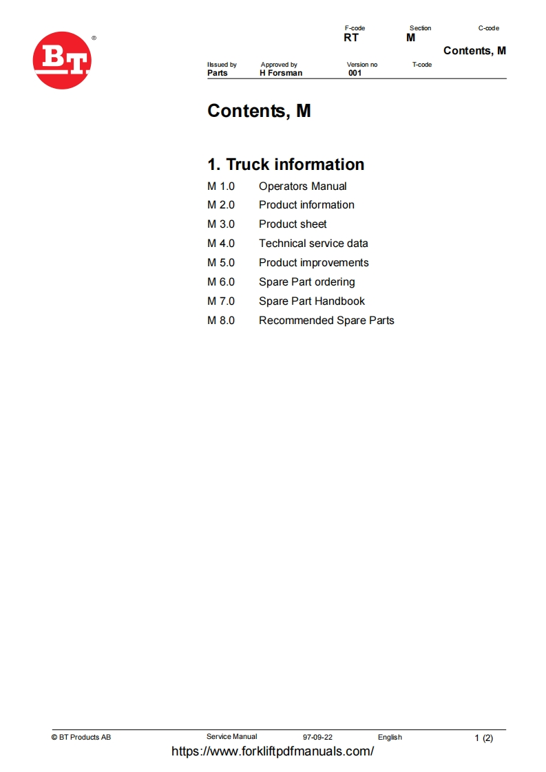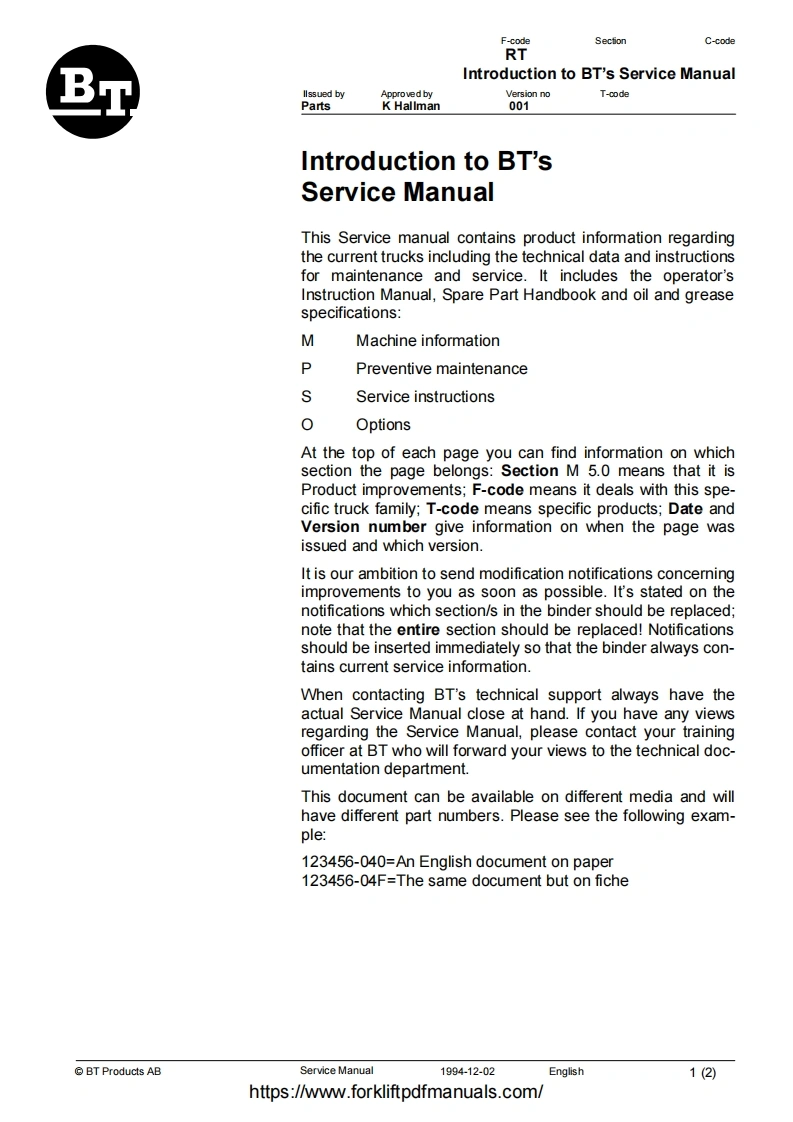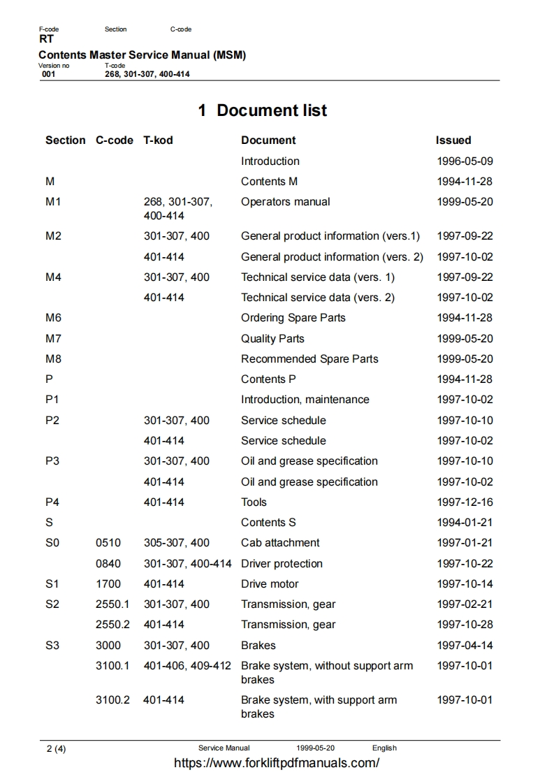 BT-RR-Forklift-Truck-Master-Service-Manual维修维护手册-PDF找手册网14小时前发布关注私信14.78MB456页047BT-RR-Forklift-Truck-Master-Service-Manual维修维护手册-PDF此内容为付费资源,请付费后查看¥29¥31黄金会员免费钻石会员免费登录购买付费资源 第1页 / 共456页 第2页 / 共456页 第3页 / 共456页 第4页 / 共456页 第5页 / 共456页 第6页 / 共456页 第7页 / 共456页 第8页 / 共456页 第9页 / 共456页 第10页 / 共456页 试读已结束,还剩446页,您可下载完整版后进行离线阅读 THE END中联重科/Doosan/BT 文本预览 BMaster Service Manual (MSM)Product family RRr盘Part number:146575-040BT Industries ABIssued:1998-01-28 SSDhttps://www.forkliftpdfmanuals.com/ 查看更多 收起部分 喜欢就支持一下吧收藏