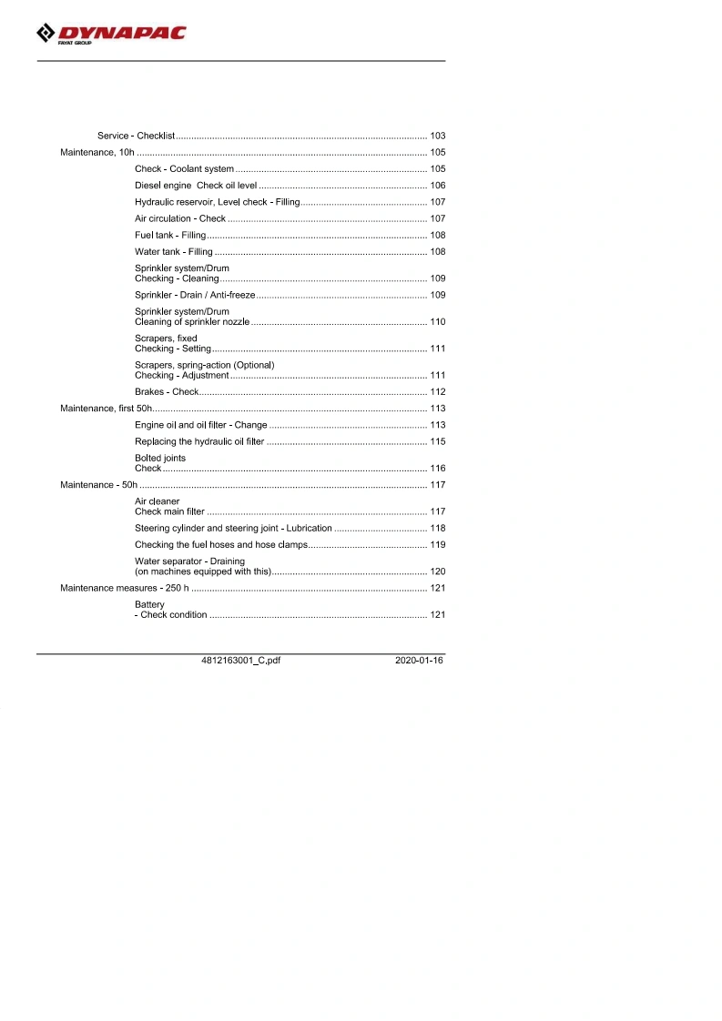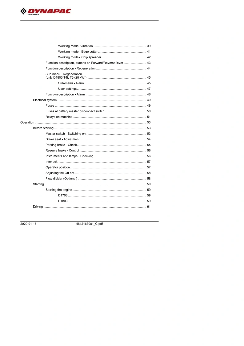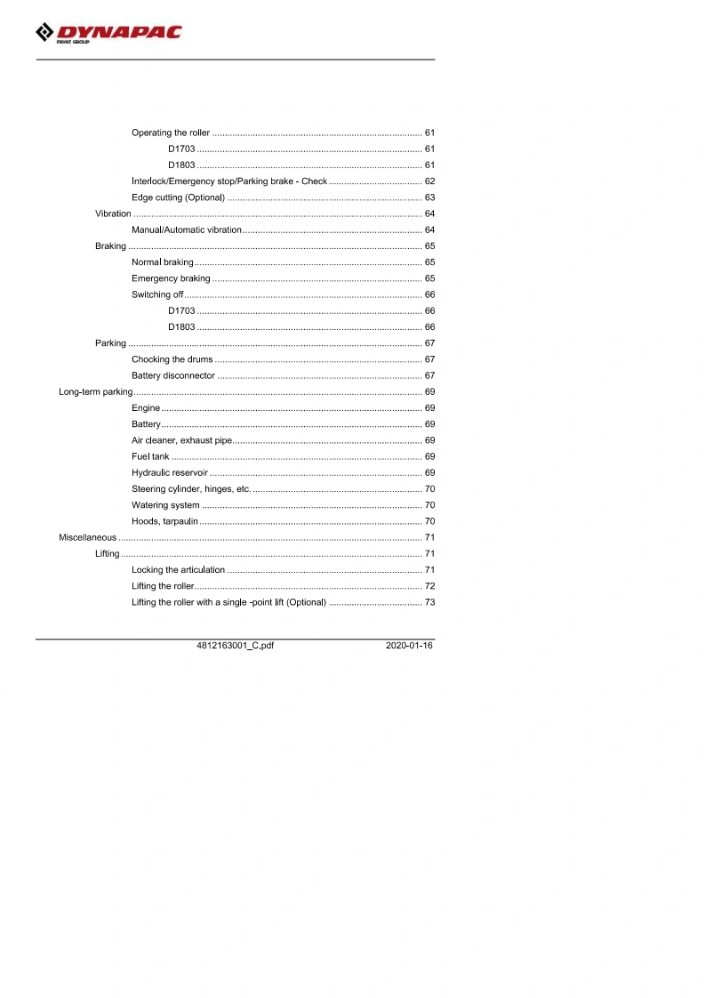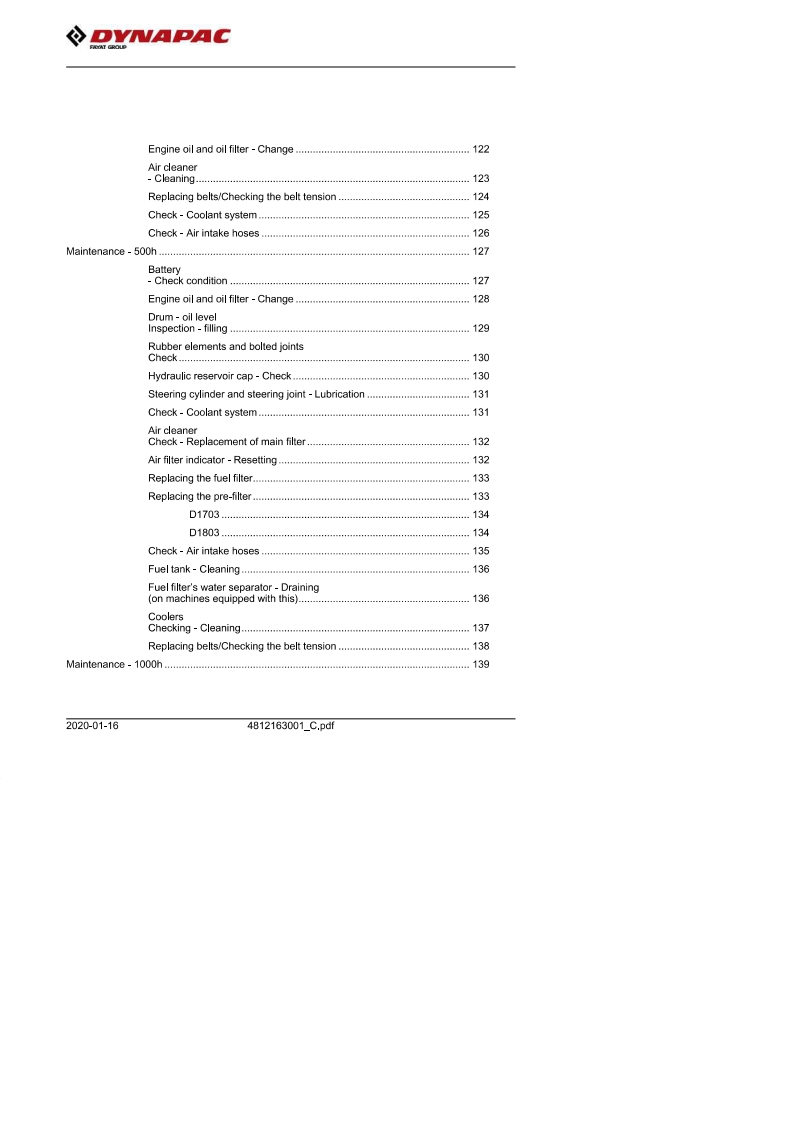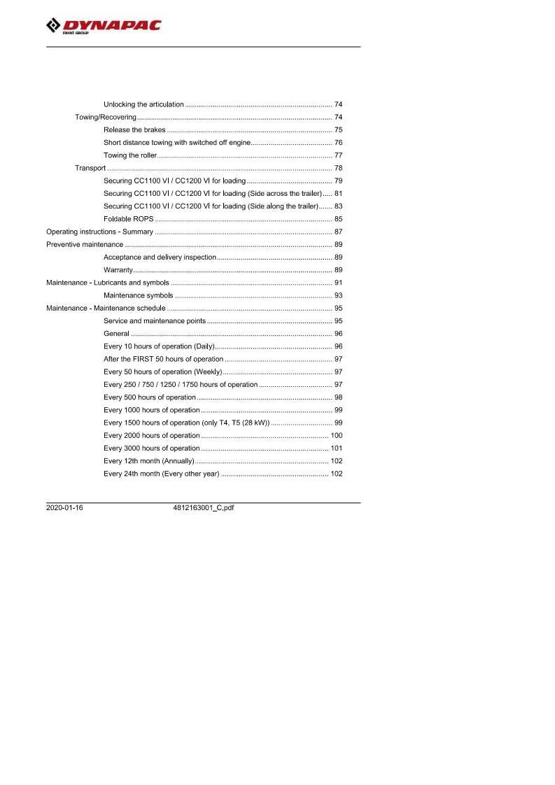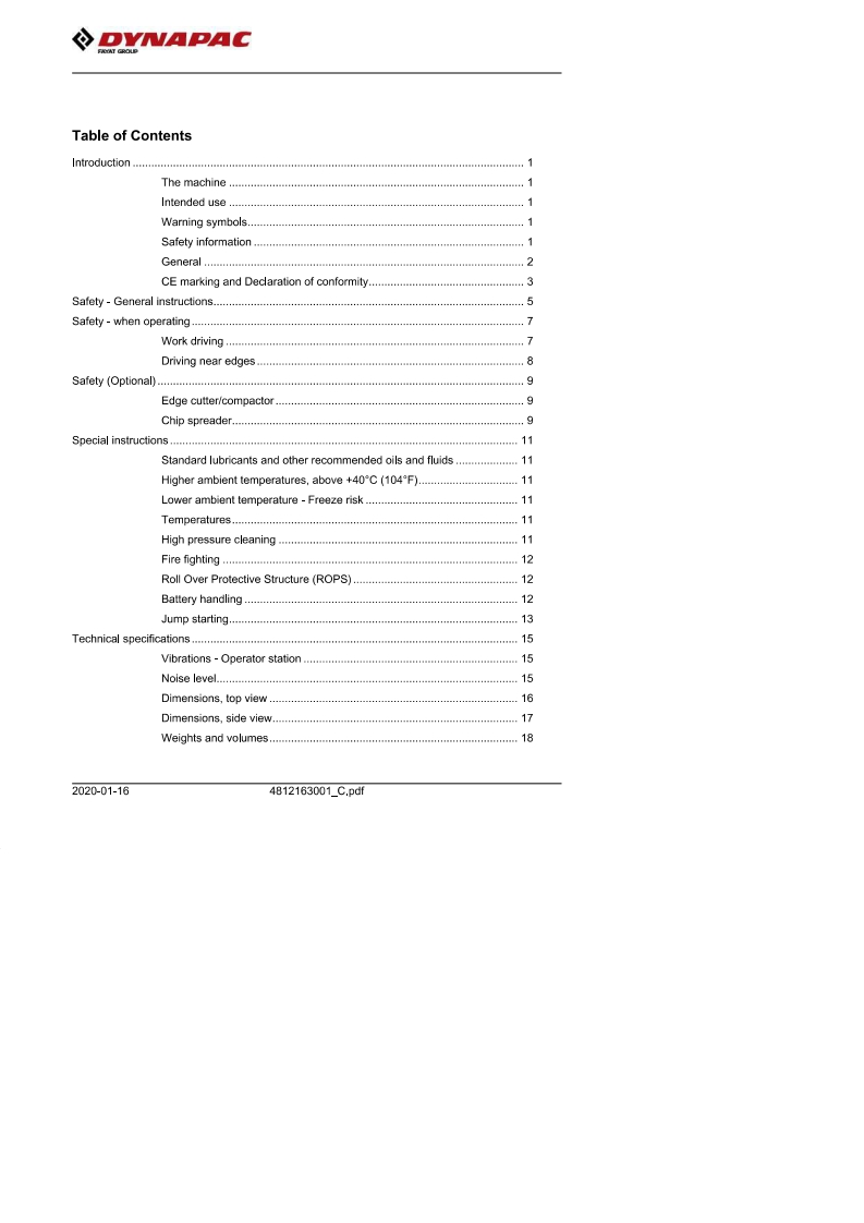DYNAPACInstruction manualOperating Maintenance4812163001_C.pdfVibratory rollersCC1100 VI/CC1200 VIEngineKubota D1703-M-DI-E4B (T4f)(18.5 kW)Kubota D1703-M-IDI-E3 (IIIA/T3)(26 kW)Kubota D1803-CR (T4f)(28 kW)Kubota D1703-M-DI-E4B (Stage V)(18.5 kW)Kubota D1803-CR-E5B(Stage V)(28 kW)Serial number10000390XxA021827-XA02328710000396xxA018676-xA02334110000389xxA018679-10000395xxA018609-10000391XxA021487-10000397xxA018677-10000444XA024596-10000446xXA023389-10000452xxA0***.10000454XxA0***-Translation of original instructionReservation for changesPrinted in SwedenEN