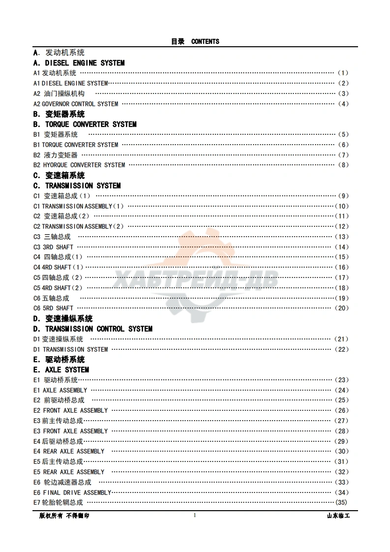 山东临工LG956-轮式装载机零部件目录手册图册找手册网5天前发布关注私信6.17MB126页040山东临工LG956-轮式装载机零部件目录手册图册此内容为付费资源,请付费后查看¥29¥31黄金会员免费钻石会员免费登录购买付费资源 第1页 / 共126页 第2页 / 共126页 第3页 / 共126页 第4页 / 共126页 第5页 / 共126页 第6页 / 共126页 第7页 / 共126页 第8页 / 共126页 第9页 / 共126页 第10页 / 共126页 试读已结束,还剩116页,您可下载完整版后进行离线阅读 THE END柳工/临工/龙工/台励福/常林/成工 文本预览 LG956轮式装载机零部件图册LG956 WHEEL LOADER PARTS CATALOGXASTPEMA-AB山东临工工程机械有限公司SHANDONG LINGONG CONSTRUCTION MACHINERY CO.,LTD. 查看更多 收起部分 喜欢就支持一下吧收藏