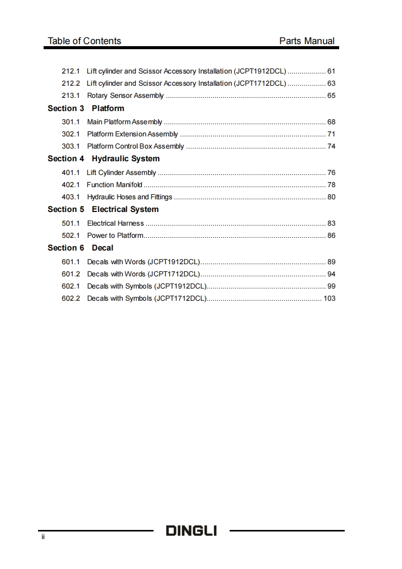 鼎力JCPT1712DCL_1912DCL-SM012220119_Rev1.2-Parts_Manual零部件手册含液压原理图找手册网5天前发布关注私信6.06MB114页031鼎力JCPT1712DCL_1912DCL-SM012220119_Rev1.2-Parts_Manual零部件手册含液压原理图此内容为付费资源,请付费后查看¥19¥21黄金会员免费钻石会员免费登录购买付费资源 第1页 / 共114页 第2页 / 共114页 第3页 / 共114页 第4页 / 共114页 第5页 / 共114页 第6页 / 共114页 第7页 / 共114页 第8页 / 共114页 第9页 / 共114页 第10页 / 共114页 试读已结束,还剩104页,您可下载完整版后进行离线阅读 THE ENDJCB/鼎力/诺力/Skyjack 文本预览 DINGLExceed.New Heig人tParts ManualJCPT1912DCLJCPT1712DCLFromSNJPD1712023D0184JPD1912223B0108-JPD1912223F0237Part Number:SM012220119Version Number:Rev1.2August 2023 PrintingDINGLI 查看更多 收起部分 喜欢就支持一下吧收藏