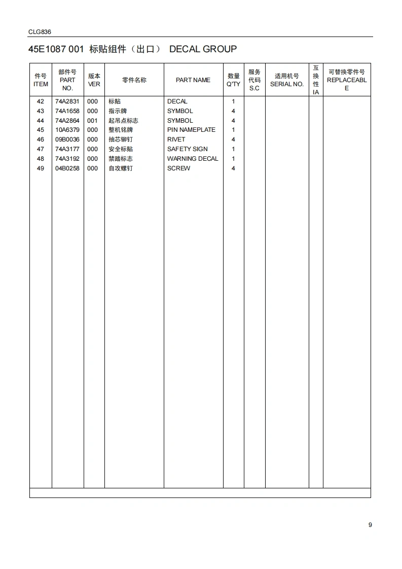 柳工Liugong_CLG836零部件目录手册图册找手册网5天前发布关注私信19.48MB174页032柳工Liugong_CLG836零部件目录手册图册此内容为付费资源,请付费后查看¥29¥31黄金会员免费钻石会员免费登录购买付费资源 第1页 / 共174页 第2页 / 共174页 第3页 / 共174页 第4页 / 共174页 第5页 / 共174页 第6页 / 共174页 第7页 / 共174页 第8页 / 共174页 第9页 / 共174页 第10页 / 共174页 试读已结束,还剩164页,您可下载完整版后进行离线阅读 THE END柳工/临工/龙工/台励福/常林/成工 文本预览 CLG836标志牌DECAL45E0643002标贴组件(国内普通臂)DECAL GROUPBVIEW B2391213165161920士时品LIGoNH VIEW H1328D向VIEW D王本配21LIUGONG2过4420图434238234 G-GSECTIONG-G〔舟去工绕到E VIEW E18)VEWCE XLEPI MO PPLEMENTI 30175F肉变转[斯告方向17532VEW F EXCEPT STE面MH152029 查看更多 收起部分 喜欢就支持一下吧收藏