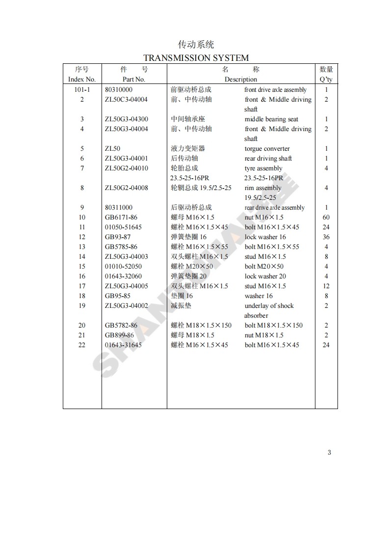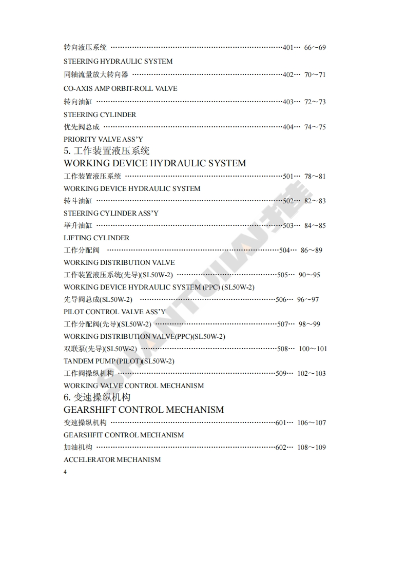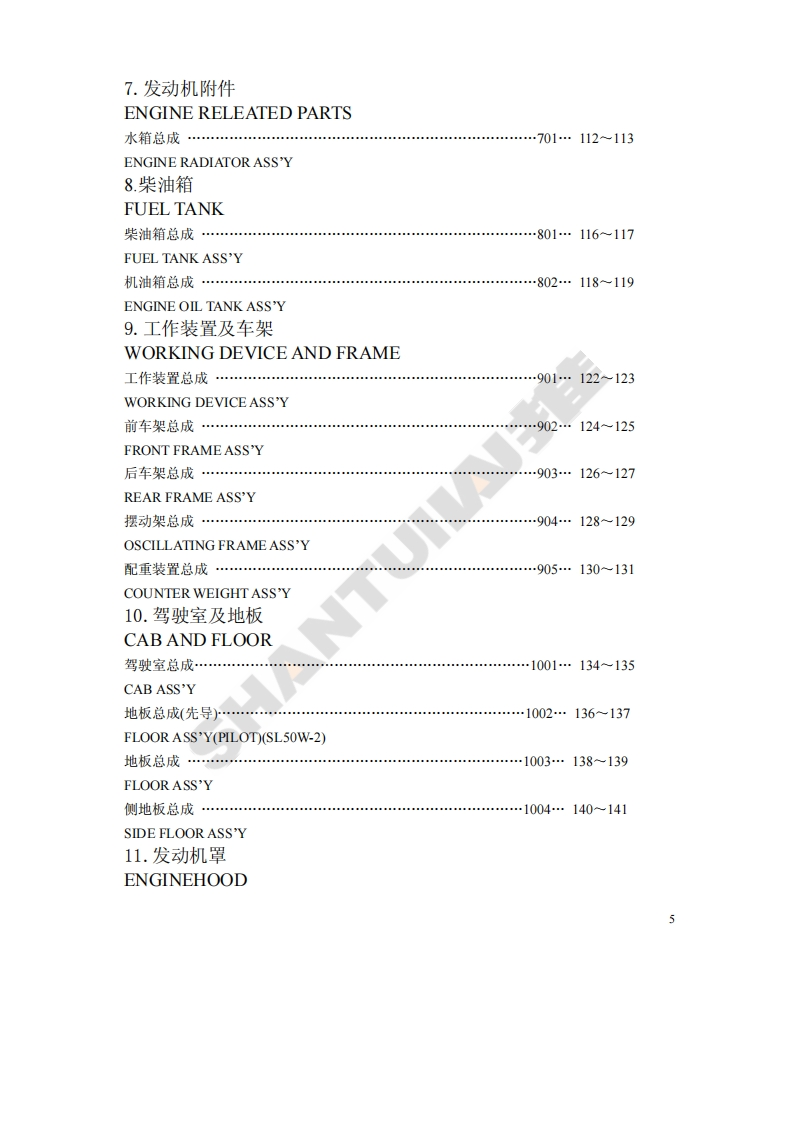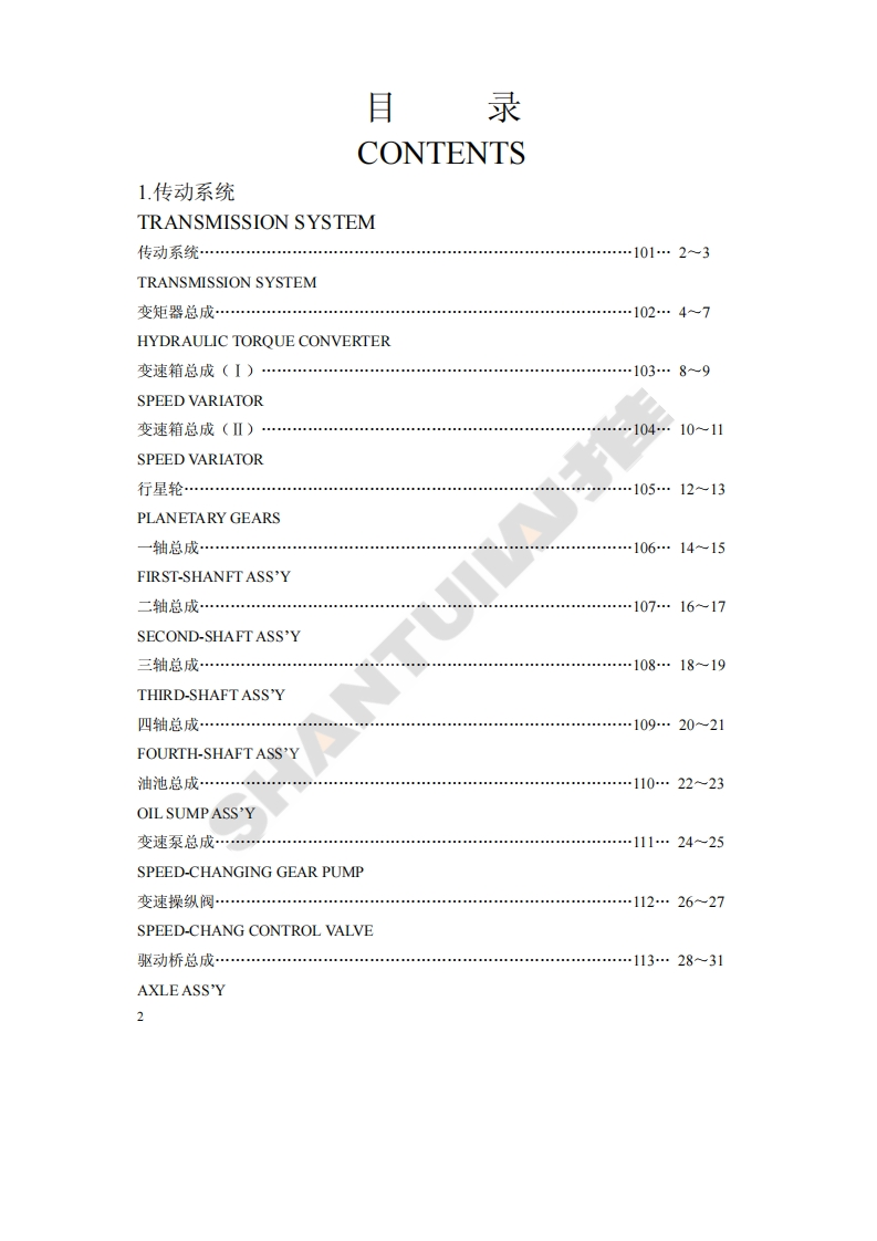 前言本零件目录对SL50W、SL50W-2两种型号轮式装载机的零件进行了综合编制。发动机所属零件,详见发动机零件目录。因产品改进所增减的零件,恕不另行通知,以后再版时修订,请用户谅解。FOREWORDIn this Parts Book are listed parts of wheel loaders in 2 modelsSL50W,SL50W-2 as common part and special.With regard to parts of engine see"Parts Book of Engine."Due to continuous research and improvement.Some parts may bechanged without notice.Please consult your SHANTUI distributor forSHANTitems you may require.1