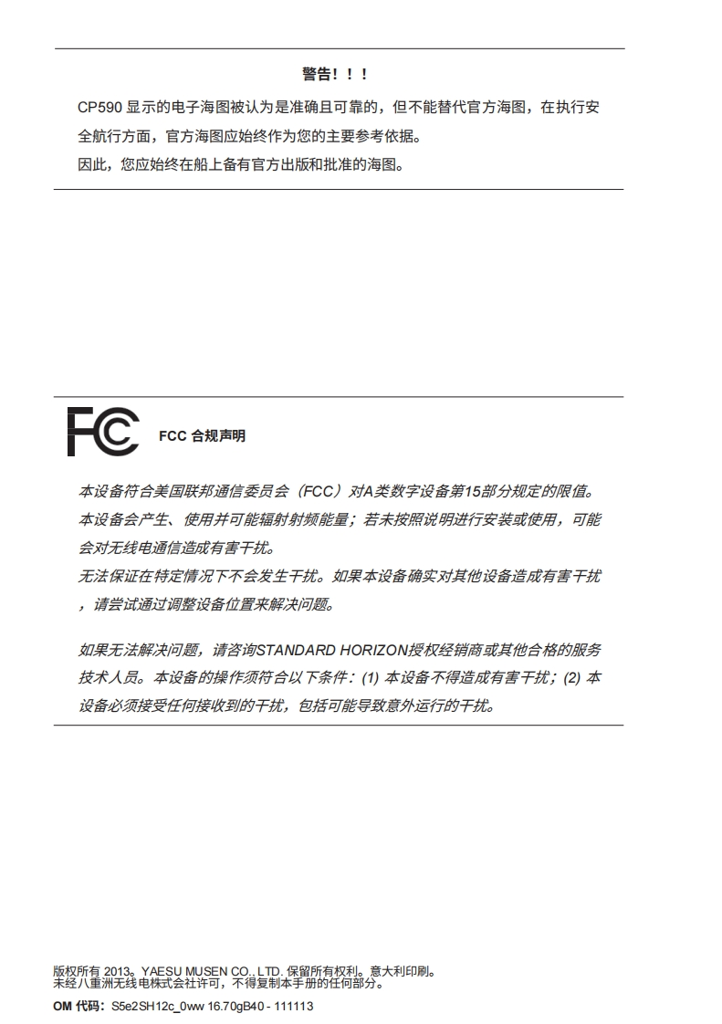 STARDARD-HORION-CP590-NC-操作说明书手册-V16.71-12-03-2013-20260408中文版找手册网3天前发布关注私信6.97MB221页036STARDARD-HORION-CP590-NC-操作说明书手册-V16.71-12-03-2013-20260408中文版此内容为付费资源,请付费后查看¥19¥21黄金会员免费钻石会员免费登录购买付费资源 第1页 / 共221页 第2页 / 共221页 第3页 / 共221页 第4页 / 共221页 第5页 / 共221页 第6页 / 共221页 第7页 / 共221页 第8页 / 共221页 第9页 / 共221页 第10页 / 共221页 试读已结束,还剩211页,您可下载完整版后进行离线阅读 THE ENDStandard-horizon 文本预览 STANDARD HORIZONNothing takes to water like Standard HorizonGPS航海图绘图仪CP59012英寸NAAS GPS海图绘图仪用户手册STANDARD HORIZON4036493174010WDST Nm BRG T场2868 查看更多 收起部分 喜欢就支持一下吧收藏