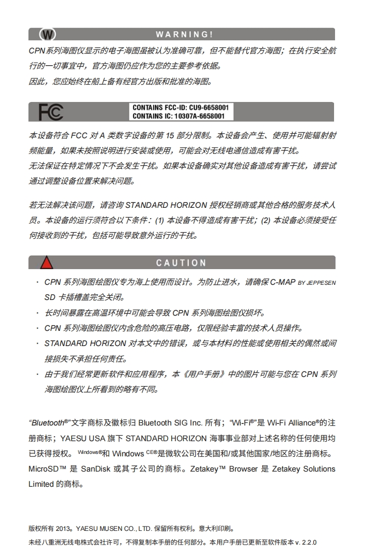 STARDARD-HORION-CPN1010I_CPN700I_操作说明书手册-V2.2-06-14-13-20260408中文版找手册网3天前发布关注私信12.20MB342页038STARDARD-HORION-CPN1010I_CPN700I_操作说明书手册-V2.2-06-14-13-20260408中文版此内容为付费资源,请付费后查看¥19¥21黄金会员免费钻石会员免费登录购买付费资源 第1页 / 共342页 第2页 / 共342页 第3页 / 共342页 第4页 / 共342页 第5页 / 共342页 第6页 / 共342页 第7页 / 共342页 第8页 / 共342页 第9页 / 共342页 第10页 / 共342页 试读已结束,还剩332页,您可下载完整版后进行离线阅读 THE ENDStandard-horizon 文本预览 STANDARD HORIZON没有比标准弛平线更迄适合☑水上洁动的」CPN1010iCPN700STANDARD HORIZON000001105180101=223wiFi书BluetoothCERTIF IEDE-MA-by JEPPESENCompatible with C-MAP 4D ChartsOwner's Manual 查看更多 收起部分 喜欢就支持一下吧收藏