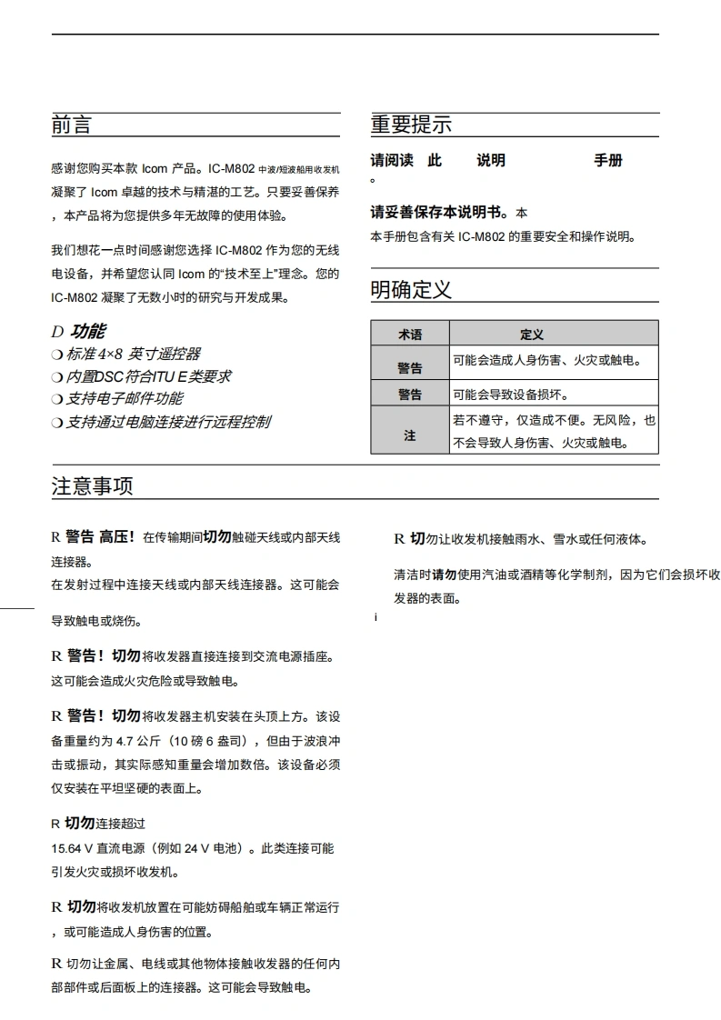 艾克幕icom-icm802-使用说明书手册20260331中文版找手册网3天前发布关注私信10.44MB140页023艾克幕icom-icm802-使用说明书手册20260331中文版此内容为付费资源,请付费后查看¥19¥21黄金会员免费钻石会员免费登录购买付费资源 第1页 / 共140页 第2页 / 共140页 第3页 / 共140页 第4页 / 共140页 第5页 / 共140页 第6页 / 共140页 第7页 / 共140页 第8页 / 共140页 第9页 / 共140页 第10页 / 共140页 试读已结束,还剩130页,您可下载完整版后进行离线阅读 THE END艾可慕 文本预览 COM使用说明书MFHF船用收发机iM802Icom Inc. 查看更多 收起部分 喜欢就支持一下吧收藏