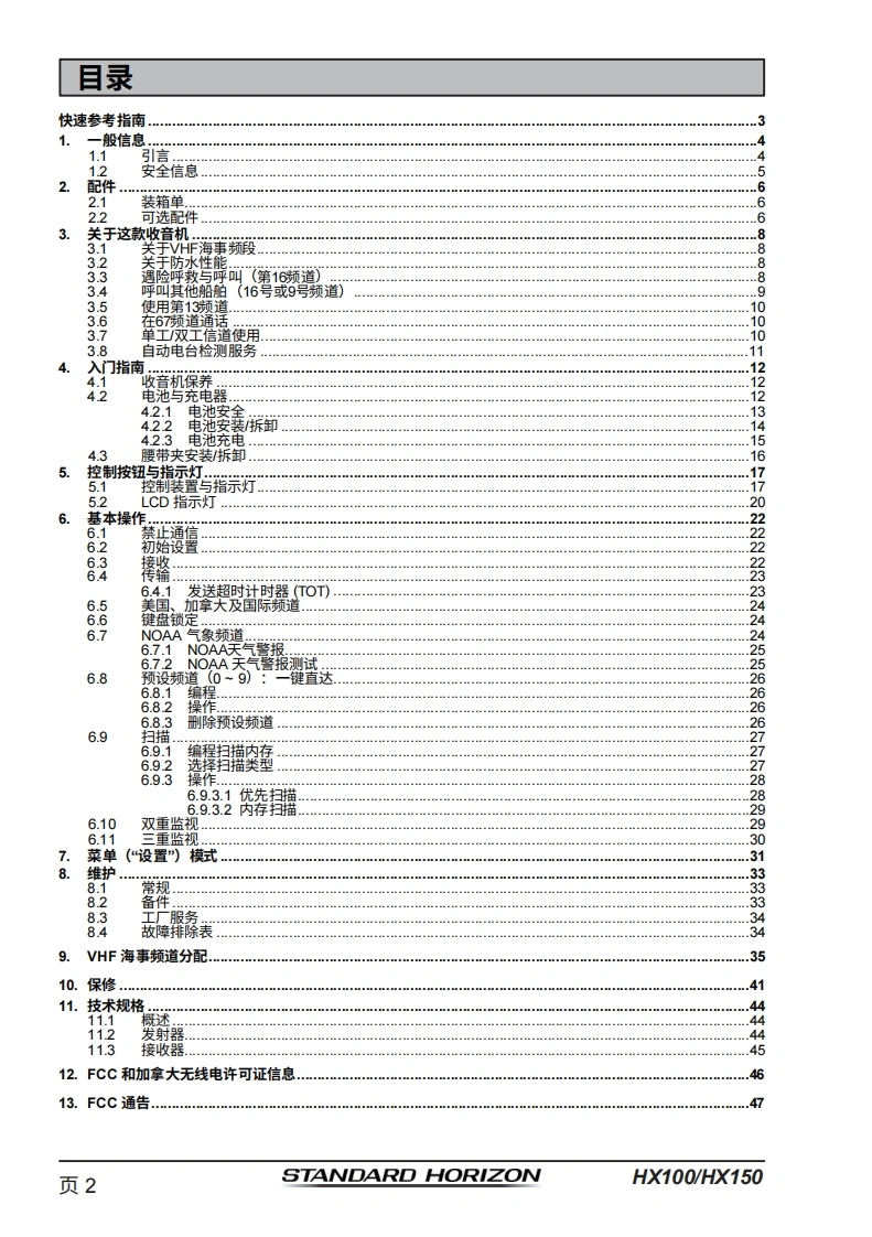 STARDARD-HORION-HX100_150_操作说明书手册_USA_ENG_EM055N102._6-5-2014-20260408中文版找手册网3天前发布关注私信3.16MB77页028STARDARD-HORION-HX100_150_操作说明书手册_USA_ENG_EM055N102._6-5-2014-20260408中文版此内容为付费资源,请付费后查看¥19¥21黄金会员免费钻石会员免费登录购买付费资源 第1页 / 共77页 第2页 / 共77页 第3页 / 共77页 第4页 / 共77页 第5页 / 共77页 第6页 / 共77页 第7页 / 共77页 第8页 / 共77页 第9页 / 共77页 第10页 / 共77页 试读已结束,还剩67页,您可下载完整版后进行离线阅读 THE ENDStandard-horizon 文本预览 STANDARD HORIZONNothing takes to water like Standard HorizonHX100/HX150浮动式VHF船用收发机用户手册STANDARD HORIZONHX100HX150 查看更多 收起部分 喜欢就支持一下吧收藏