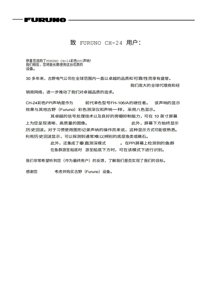 古野FURUNO-ch24-操作说明手册-20260409中文版找手册网3天前发布关注私信11.30MB86页047古野FURUNO-ch24-操作说明手册-20260409中文版此内容为付费资源,请付费后查看¥19¥21黄金会员免费钻石会员免费登录购买付费资源 第1页 / 共86页 第2页 / 共86页 第3页 / 共86页 第4页 / 共86页 第5页 / 共86页 第6页 / 共86页 第7页 / 共86页 第8页 / 共86页 第9页 / 共86页 第10页 / 共86页 试读已结束,还剩76页,您可下载完整版后进行离线阅读 THE ENDCobra/Furuno 文本预览 FURUNOgPERATgR'S UA5UAE彩色PP声呐型号CH-24古野电气株式会社日本奈良县日野见市 查看更多 收起部分 喜欢就支持一下吧收藏