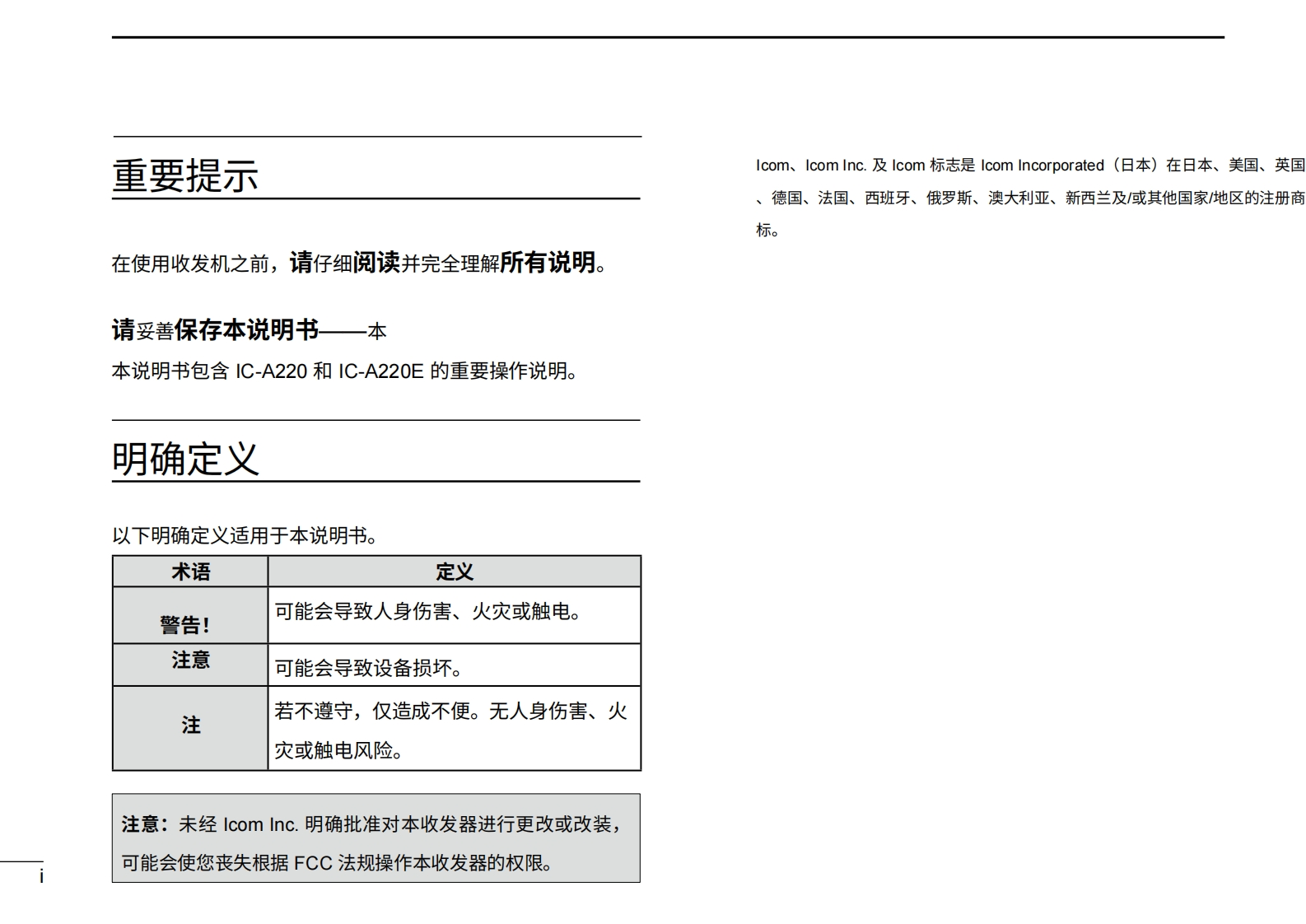 艾可慕IC-A220-Instruction-Manual操作说明书手册20260331中文版找手册网3天前发布关注私信1.27MB76页036艾可慕IC-A220-Instruction-Manual操作说明书手册20260331中文版此内容为付费资源,请付费后查看¥19¥21黄金会员免费钻石会员免费登录购买付费资源 第1页 / 共76页 第2页 / 共76页 第3页 / 共76页 第4页 / 共76页 第5页 / 共76页 第6页 / 共76页 第7页 / 共76页 第8页 / 共76页 第9页 / 共76页 第10页 / 共76页 试读已结束,还剩66页,您可下载完整版后进行离线阅读 THE END艾可慕 文本预览 COM使用说明书VHF航空频段收发机DUAL ECCOMRCLCOMM公238VOL118.00136.975MEMOFF1C-A220本设备符合美国联邦通信委员会(FCC)规则第15部分的规定。使用本设备须确保不会造成有害干扰 查看更多 收起部分 喜欢就支持一下吧收藏