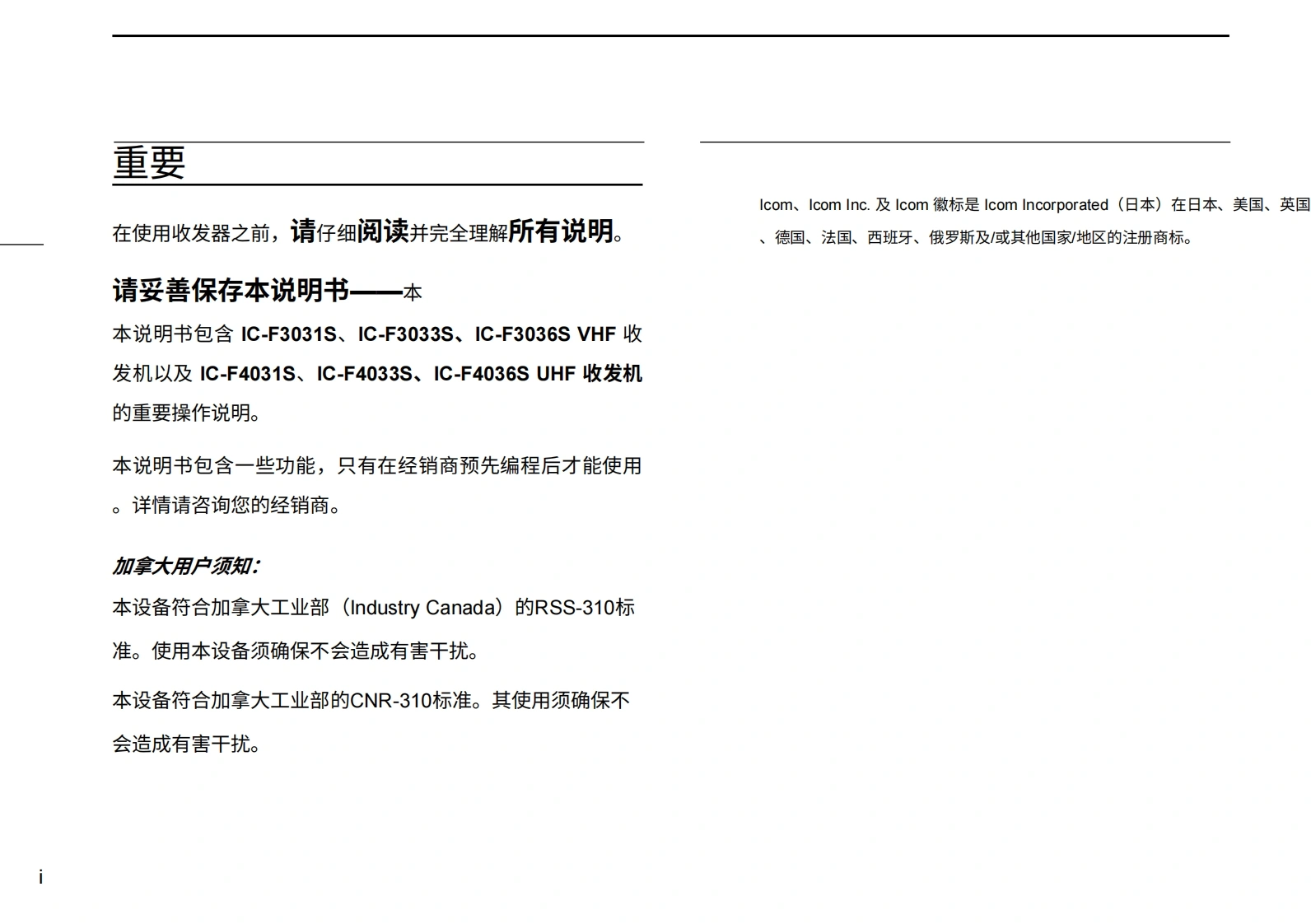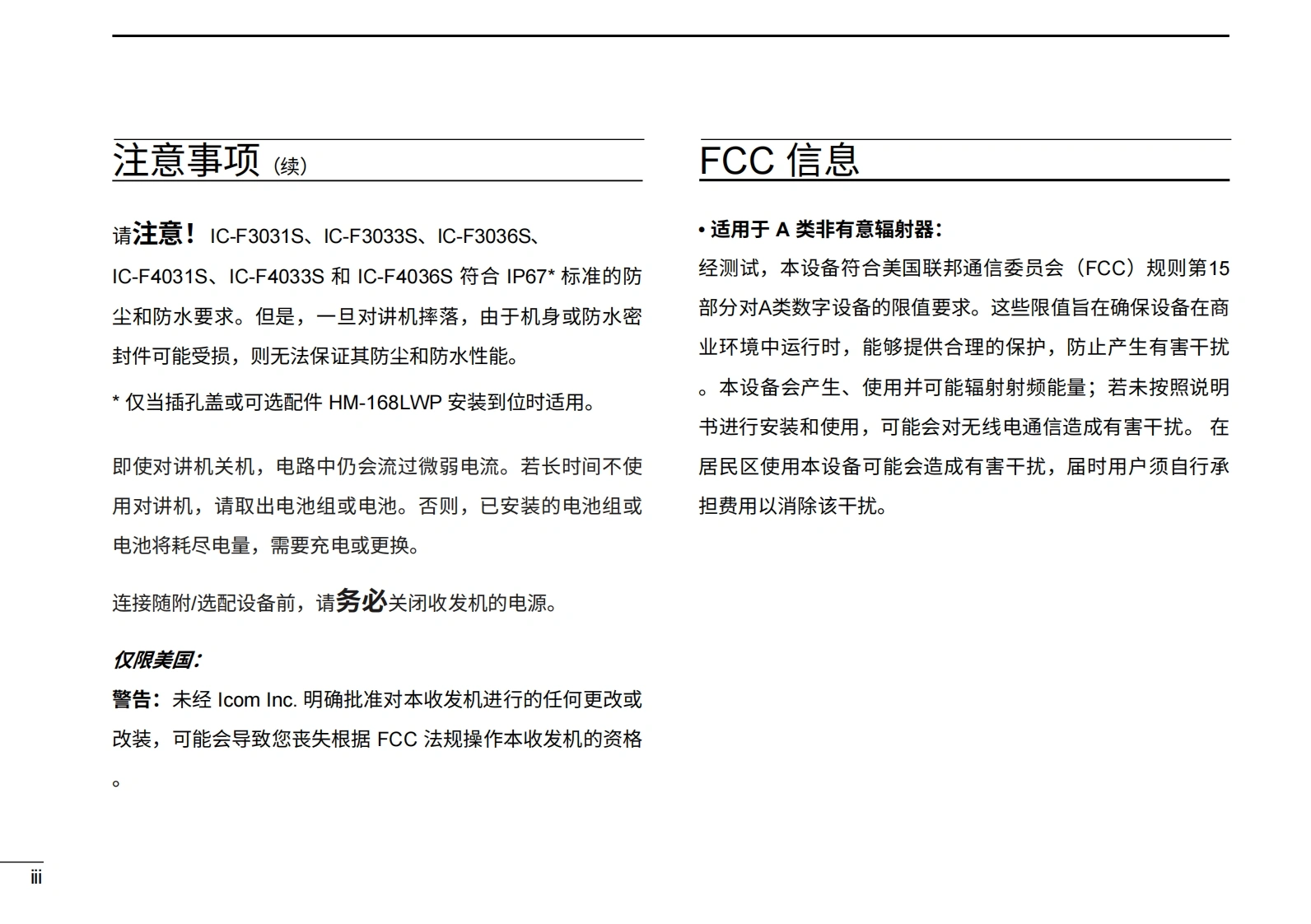 艾可慕IC-F3031S_F4031S_InstructionManual操作说明书手册20260331中文版找手册网3天前发布关注私信2.90MB65页025艾可慕IC-F3031S_F4031S_InstructionManual操作说明书手册20260331中文版此内容为付费资源,请付费后查看¥19¥21黄金会员免费钻石会员免费登录购买付费资源 第1页 / 共65页 第2页 / 共65页 第3页 / 共65页 第4页 / 共65页 第5页 / 共65页 第6页 / 共65页 第7页 / 共65页 第8页 / 共65页 第9页 / 共65页 第10页 / 共65页 试读已结束,还剩55页,您可下载完整版后进行离线阅读 THE END艾可慕 文本预览 COMMDC 1200Compatible使用说明书VHF收发机iF3031SiF3033SiF3036SUHF收发机iF403TSCOMiF4033SiF4036SIcom Inc.本设备符合FCC规则第15部分的规定。使用本设备须确保不会造成有害干扰。照片显示的是VHF收发机 查看更多 收起部分 喜欢就支持一下吧收藏