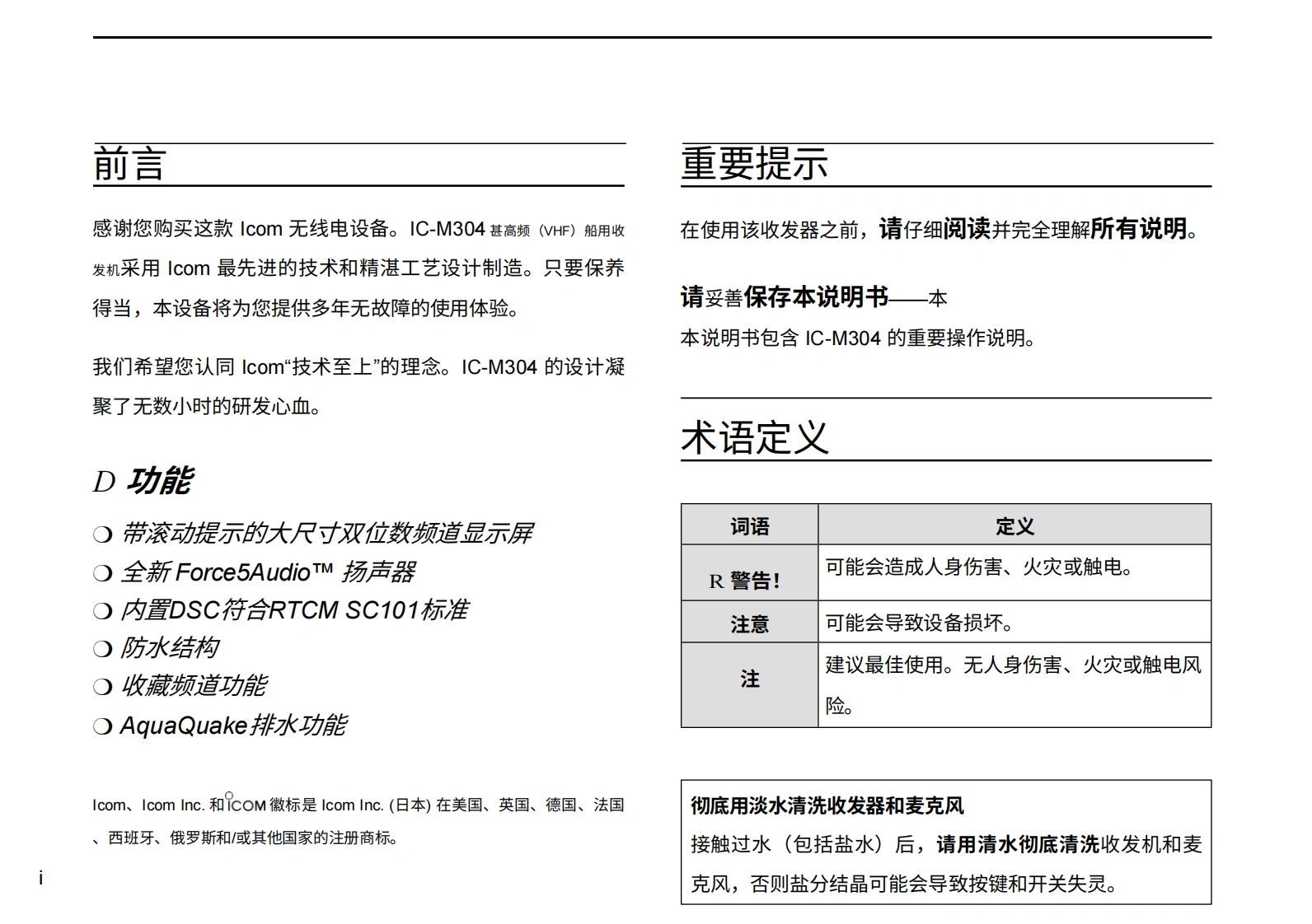 艾可慕IC-M304_Manual操作说明书手册20260331中文版找手册网3天前发布关注私信3.71MB85页042艾可慕IC-M304_Manual操作说明书手册20260331中文版此内容为付费资源,请付费后查看¥19¥21黄金会员免费钻石会员免费登录购买付费资源 第1页 / 共85页 第2页 / 共85页 第3页 / 共85页 第4页 / 共85页 第5页 / 共85页 第6页 / 共85页 第7页 / 共85页 第8页 / 共85页 第9页 / 共85页 第10页 / 共85页 试读已结束,还剩75页,您可下载完整版后进行离线阅读 THE END艾可慕 文本预览 COM使用说明书VHF船用收发机ivM3○4HEMARINE IC-M304VOLBUSYTAG(iCOMSUBMERSIBLETAGDUALSCANCH/WX16Icom Inc. 查看更多 收起部分 喜欢就支持一下吧收藏