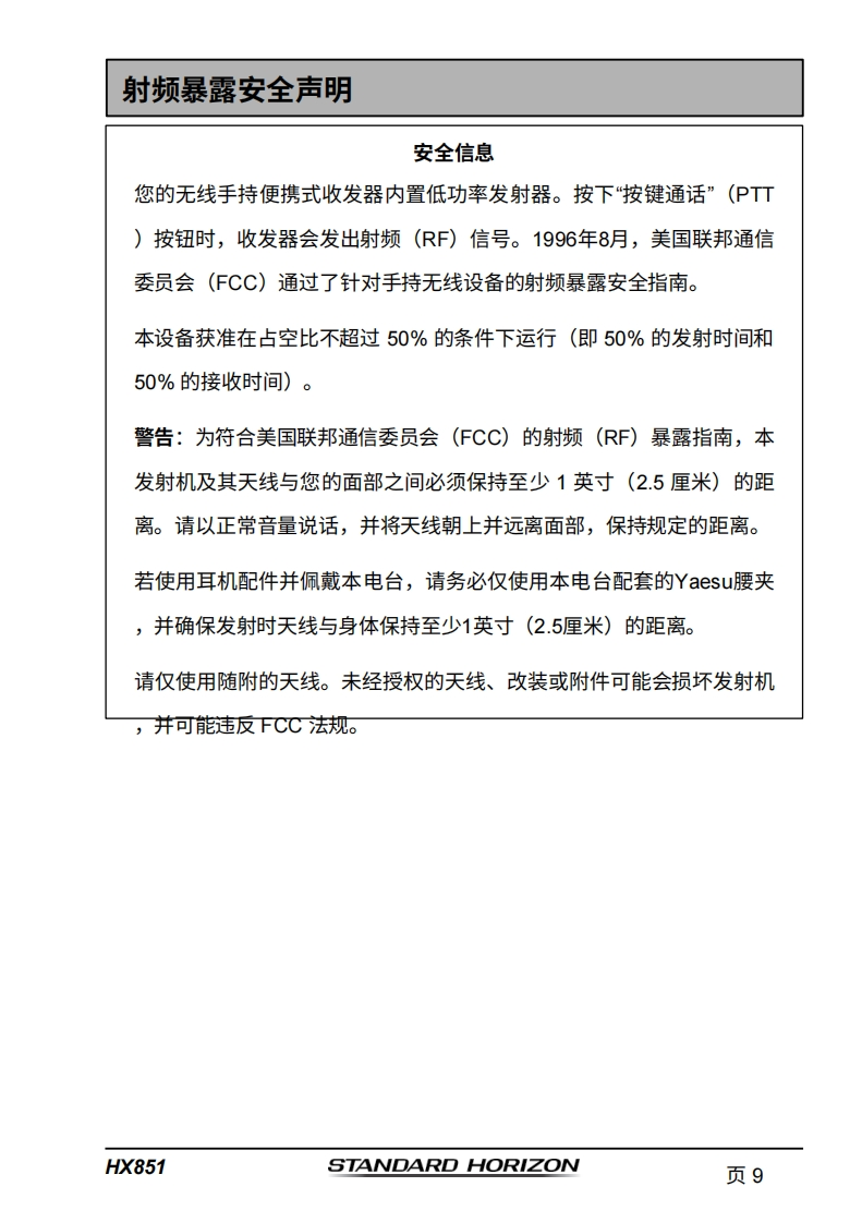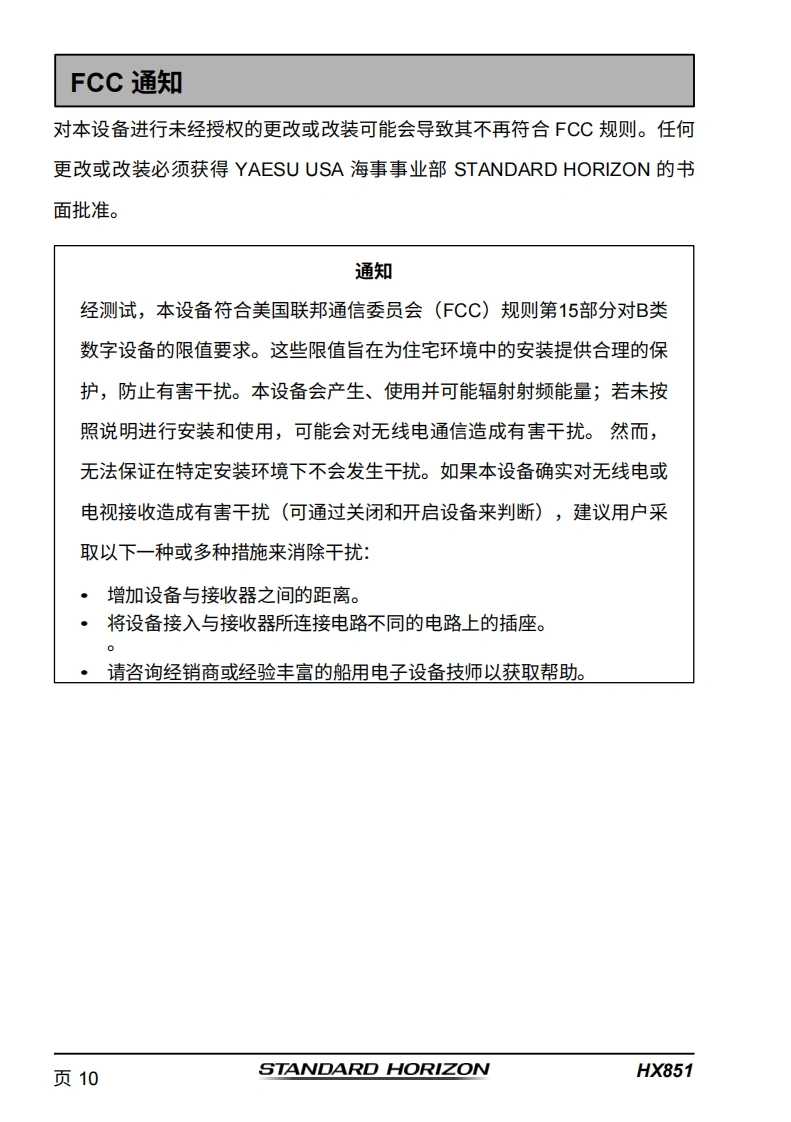 STARDARD-HORION-HX851_操作说明书手册_ENG_USA_EM031N173-20260408中文版找手册网3天前发布关注私信5.97MB164页032STARDARD-HORION-HX851_操作说明书手册_ENG_USA_EM031N173-20260408中文版此内容为付费资源,请付费后查看¥19¥21黄金会员免费钻石会员免费登录购买付费资源 第1页 / 共164页 第2页 / 共164页 第3页 / 共164页 第4页 / 共164页 第5页 / 共164页 第6页 / 共164页 第7页 / 共164页 第8页 / 共164页 第9页 / 共164页 第10页 / 共164页 试读已结束,还剩154页,您可下载完整版后进行离线阅读 THE ENDStandard-horizon 文本预览 STANDARD HORIZONNothing takes to water like Standard HorizonHX851带GPS的船用浮动收发器用户手册HI USA-016118.5FLOATINGHX851PRESET 查看更多 收起部分 喜欢就支持一下吧收藏
