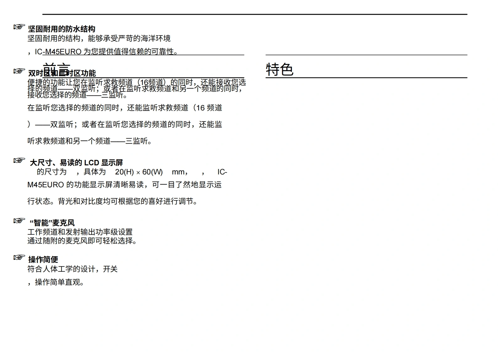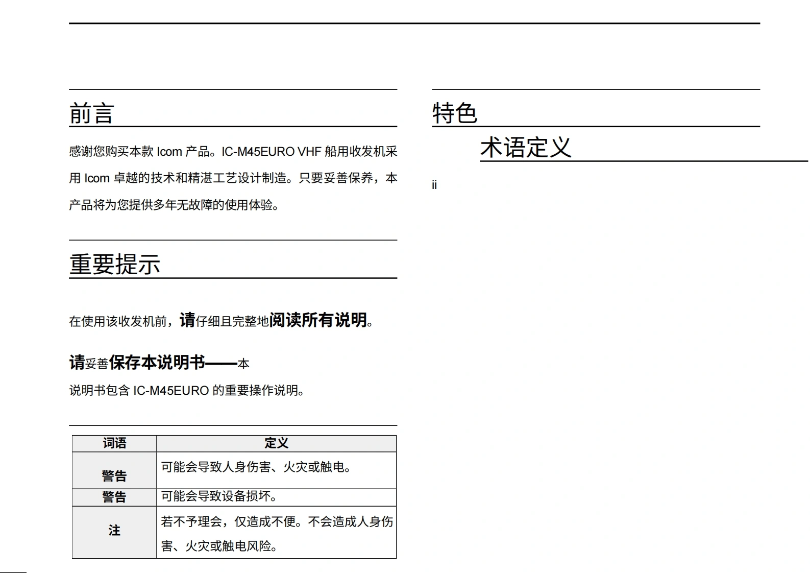艾可慕IC-M45EURO_Manual操作说明书手册20260331中文版找手册网3天前发布关注私信1.58MB41页025艾可慕IC-M45EURO_Manual操作说明书手册20260331中文版此内容为付费资源,请付费后查看¥19¥21黄金会员免费钻石会员免费登录购买付费资源 第1页 / 共41页 第2页 / 共41页 第3页 / 共41页 第4页 / 共41页 第5页 / 共41页 第6页 / 共41页 第7页 / 共41页 第8页 / 共41页 第9页 / 共41页 第10页 / 共41页 试读已结束,还剩31页,您可下载完整版后进行离线阅读 THE END艾可慕 文本预览 COM使用说明书VHF船用收发机iVI45ER○Icom Inc. 查看更多 收起部分 喜欢就支持一下吧收藏