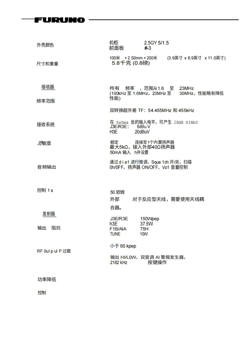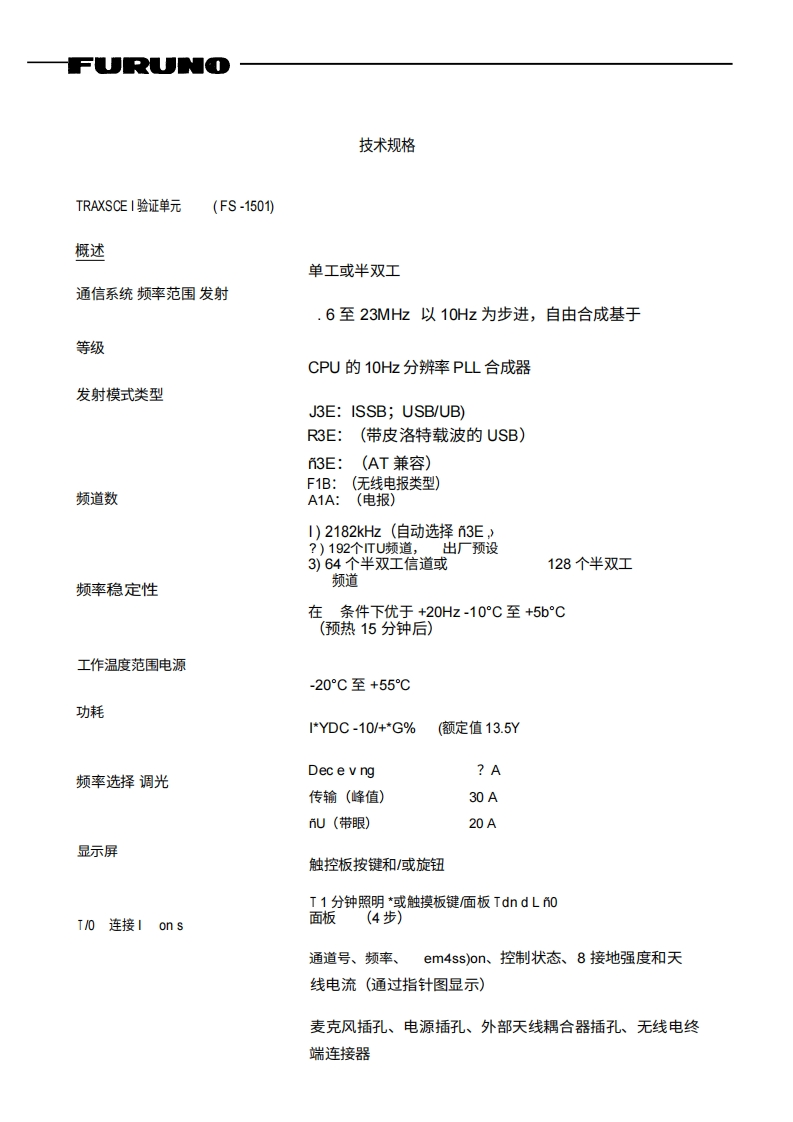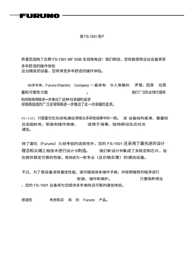 古野FURUNO-fs1501-操作说明手册-20260409中文版找手册网3天前发布关注私信20.60MB131页024古野FURUNO-fs1501-操作说明手册-20260409中文版此内容为付费资源,请付费后查看¥19¥21黄金会员免费钻石会员免费登录购买付费资源 第1页 / 共131页 第2页 / 共131页 第3页 / 共131页 第4页 / 共131页 第5页 / 共131页 第6页 / 共131页 第7页 / 共131页 第8页 / 共131页 第9页 / 共131页 第10页 / 共131页 试读已结束,还剩121页,您可下载完整版后进行离线阅读 THE ENDCobra/Furuno 文本预览 No.:0M-E5485-1CFURUNOOPERATOR'S MANUAL150W SSB RADIOTELEPHONEMODEL FS-1501FURUNO ELECTRIC CO.,LTD.NISHINOMIYA,JAPAN881030KY(8810.shni)9满ED满心M 查看更多 收起部分 喜欢就支持一下吧收藏