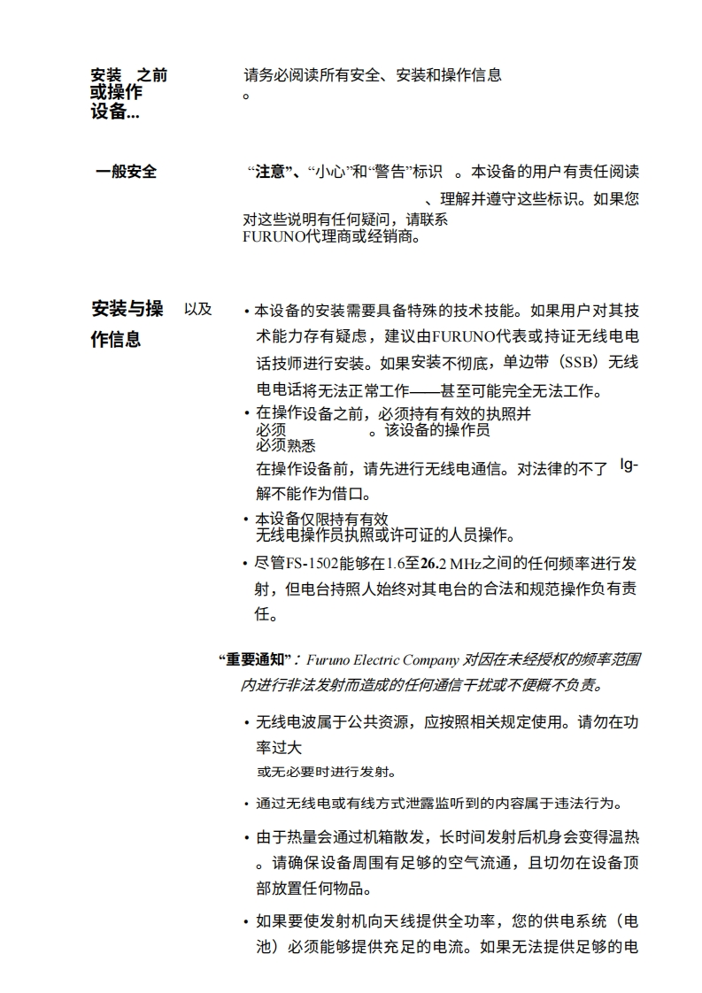 古野FURUNO-fs1502-操作说明手册-20260409中文版找手册网3天前发布关注私信24.13MB193页038古野FURUNO-fs1502-操作说明手册-20260409中文版此内容为付费资源,请付费后查看¥19¥21黄金会员免费钻石会员免费登录购买付费资源 第1页 / 共193页 第2页 / 共193页 第3页 / 共193页 第4页 / 共193页 第5页 / 共193页 第6页 / 共193页 第7页 / 共193页 第8页 / 共193页 第9页 / 共193页 第10页 / 共193页 试读已结束,还剩183页,您可下载完整版后进行离线阅读 THE ENDCobra/Furuno 文本预览 FURUNOgPERATgR'S UASUAE单边带无线电电话型号FS-1S02本手册适用于程序版本号为1.02的设备。FURUNO ELECTRICN IS HINOMI YA,JA PANuyoo 查看更多 收起部分 喜欢就支持一下吧收藏