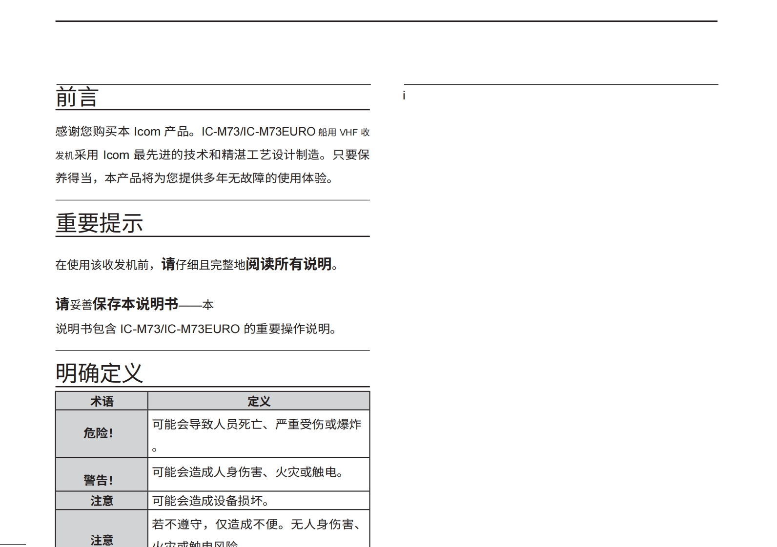 艾可慕IC-M73-操作说明书手册20260331中文版找手册网3天前发布关注私信4.28MB101页036艾可慕IC-M73-操作说明书手册20260331中文版此内容为付费资源,请付费后查看¥19¥21黄金会员免费钻石会员免费登录购买付费资源 第1页 / 共101页 第2页 / 共101页 第3页 / 共101页 第4页 / 共101页 第5页 / 共101页 第6页 / 共101页 第7页 / 共101页 第8页 / 共101页 第9页 / 共101页 第10页 / 共101页 试读已结束,还剩91页,您可下载完整版后进行离线阅读 THE END艾可慕 文本预览 使用说明书VHF船用收发机iM73iV73⊙MCOM6CALLINGCALL ING1C-M73-M73EURO16/C16/CYCH/WX本设备符合FCC规则第15部分的规定。使用本设备须确保不会造成有害干扰。Icom Inc.1C-M73IC-M73EURO 查看更多 收起部分 喜欢就支持一下吧收藏