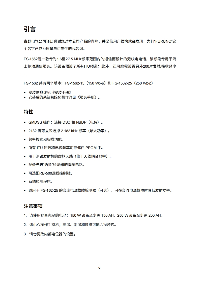 古野FURUNO-fs1562-操作说明手册-20260409中文版找手册网3天前发布关注私信1.76MB70页035古野FURUNO-fs1562-操作说明手册-20260409中文版此内容为付费资源,请付费后查看¥19¥21黄金会员免费钻石会员免费登录购买付费资源 第1页 / 共70页 第2页 / 共70页 第3页 / 共70页 第4页 / 共70页 第5页 / 共70页 第6页 / 共70页 第7页 / 共70页 第8页 / 共70页 第9页 / 共70页 第10页 / 共70页 试读已结束,还剩60页,您可下载完整版后进行离线阅读 THE ENDCobra/Furuno 文本预览 FURUNO操作手册BLU无线电话FS-1562-15(150W)型号FS-1562-25(250W)本手册仅包含操作信息。如需其他信息,请参阅以下手册:●安装…安装手册FURUNO ELECTRIC CO.,LTD.NISHINOMIYA,JAPAN 查看更多 收起部分 喜欢就支持一下吧收藏