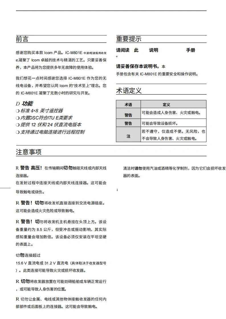 艾可慕IC-M801E_Manual操作说明书手册20260331中文版找手册网3天前发布关注私信11.05MB140页034艾可慕IC-M801E_Manual操作说明书手册20260331中文版此内容为付费资源,请付费后查看¥19¥21黄金会员免费钻石会员免费登录购买付费资源 第1页 / 共140页 第2页 / 共140页 第3页 / 共140页 第4页 / 共140页 第5页 / 共140页 第6页 / 共140页 第7页 / 共140页 第8页 / 共140页 第9页 / 共140页 第10页 / 共140页 试读已结束,还剩130页,您可下载完整版后进行离线阅读 THE END艾可慕 文本预览 iCOM使用说明书MFHF船用收发机ivI8O1三Icom Inc. 查看更多 收起部分 喜欢就支持一下吧收藏