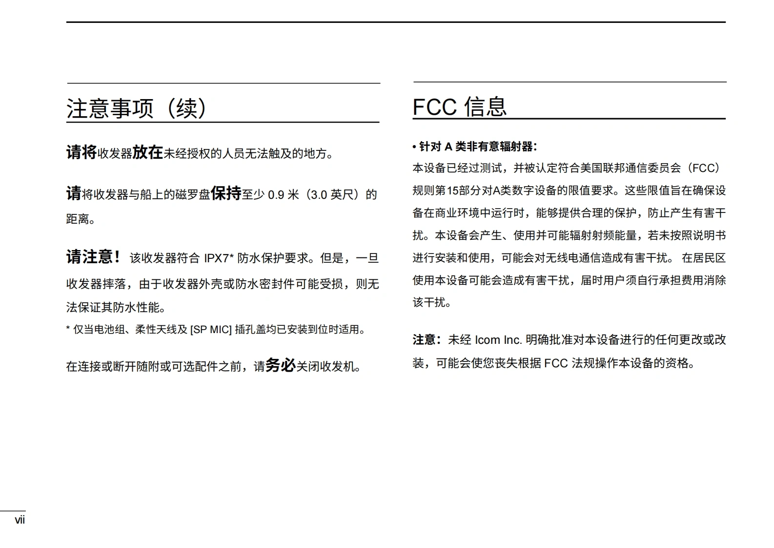艾可慕IC-M88-Instruction-manual操作说明书手册20260331中文版找手册网3天前发布关注私信3.80MB89页048艾可慕IC-M88-Instruction-manual操作说明书手册20260331中文版此内容为付费资源,请付费后查看¥19¥21黄金会员免费钻石会员免费登录购买付费资源 第1页 / 共89页 第2页 / 共89页 第3页 / 共89页 第4页 / 共89页 第5页 / 共89页 第6页 / 共89页 第7页 / 共89页 第8页 / 共89页 第9页 / 共89页 第10页 / 共89页 试读已结束,还剩79页,您可下载完整版后进行离线阅读 THE END艾可慕 文本预览 COM使用说明书VHF船用收发机iM88WATERPROOF本设备符合美国联邦通信委员会(FCC)规则第15部分的规定。使用本设备须确保6IC-M88不会造成有害干扰。AGU/I/C/LDUACH/WXSCNLOCKH/LCOMIcom Inc. 查看更多 收起部分 喜欢就支持一下吧收藏