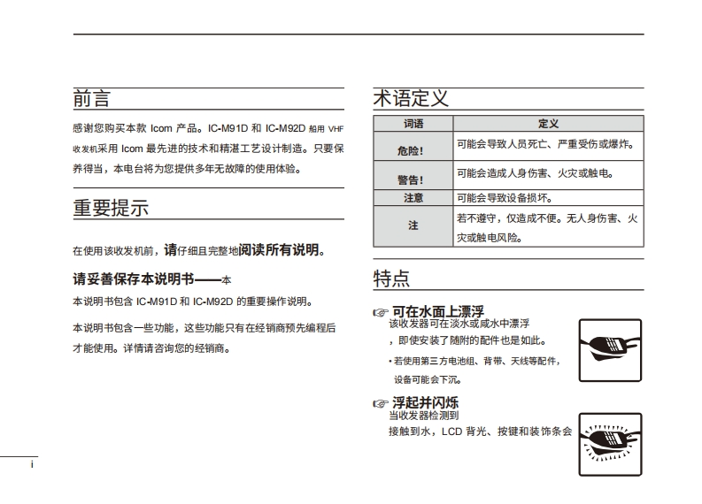 艾可慕IC-M91D-M92D-Instruction-manual操作说明书手册20260331中文版找手册网3天前发布关注私信4.88MB176页044艾可慕IC-M91D-M92D-Instruction-manual操作说明书手册20260331中文版此内容为付费资源,请付费后查看¥19¥21黄金会员免费钻石会员免费登录购买付费资源 第1页 / 共176页 第2页 / 共176页 第3页 / 共176页 第4页 / 共176页 第5页 / 共176页 第6页 / 共176页 第7页 / 共176页 第8页 / 共176页 第9页 / 共176页 第10页 / 共176页 试读已结束,还剩166页,您可下载完整版后进行离线阅读 THE END艾可慕 文本预览 COM使用说明书VHF船用收发机☑8B四司本设备符合FCC规则第15部分的规定。用本设备须确保不会造成有害干扰。Icom Inc. 查看更多 收起部分 喜欢就支持一下吧收藏