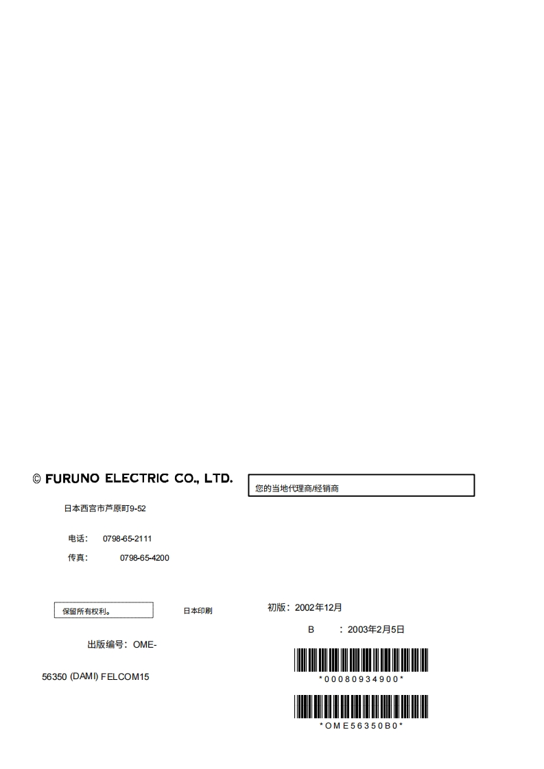 日本古野Felcom-15_Operation_Manual操作说明书手册-20260409中文版找手册网3天前发布关注私信4.75MB327页048日本古野Felcom-15_Operation_Manual操作说明书手册-20260409中文版此内容为付费资源,请付费后查看¥19¥21黄金会员免费钻石会员免费登录购买付费资源 第1页 / 共327页 第2页 / 共327页 第3页 / 共327页 第4页 / 共327页 第5页 / 共327页 第6页 / 共327页 第7页 / 共327页 第8页 / 共327页 第9页 / 共327页 第10页 / 共327页 试读已结束,还剩317页,您可下载完整版后进行离线阅读 THE ENDCobra/Furuno 文本预览 FUURUUNOOPERATOR'S MANUALINMARSAT-C移动地面站型号FELCOM 15FURUNO ELECTRIC CO.,LTD.NISHINOMIYA,JAPAN 查看更多 收起部分 喜欢就支持一下吧收藏