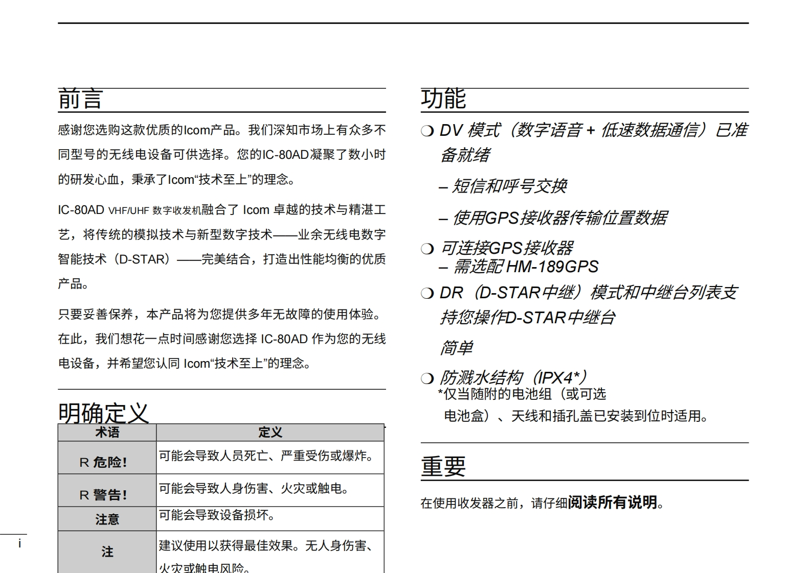 艾可慕ICOM—IC-80AD-Instruction-Manual20260331中文版找手册网3天前发布关注私信13.64MB353页038艾可慕ICOM—IC-80AD-Instruction-Manual20260331中文版此内容为付费资源,请付费后查看¥19¥21黄金会员免费钻石会员免费登录购买付费资源 第1页 / 共353页 第2页 / 共353页 第3页 / 共353页 第4页 / 共353页 第5页 / 共353页 第6页 / 共353页 第7页 / 共353页 第8页 / 共353页 第9页 / 共353页 第10页 / 共353页 试读已结束,还剩343页,您可下载完整版后进行离线阅读 THE END艾可慕 文本预览 @com使用说明书VHF/UHF数字收发机i8O△)COMit-897T IC-nOAD本设备符合美国联邦通信委员会(FCC)规则第15部分的规定。使用本设备须遵守以下两项条件:(1)本设备不得造成有害干扰;(2)本设四备必须接受任何接收到的干扰,包括可能导致意外运行的干扰。⊙④D-STAR回图思图图警告:根据FCC规则和联邦法律,禁止对本设备进行改装以接收蜂图时函四窝无线电电话服务信号。四图四国 查看更多 收起部分 喜欢就支持一下吧收藏