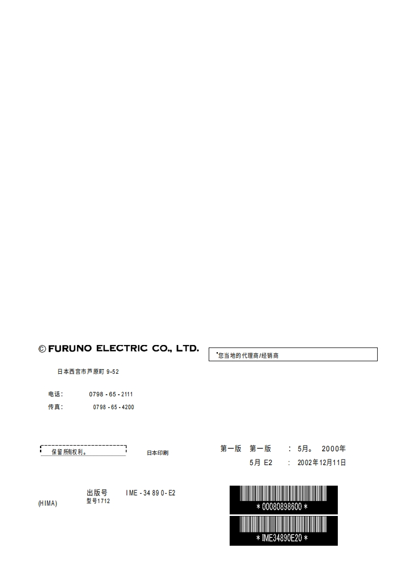 日本古野FURUNO-1712_安装调试说明书手册_e2__12-11-02-20260409中文版找手册网3天前发布关注私信6.35MB37页030日本古野FURUNO-1712_安装调试说明书手册_e2__12-11-02-20260409中文版此内容为付费资源,请付费后查看¥19¥21黄金会员免费钻石会员免费登录购买付费资源 第1页 / 共37页 第2页 / 共37页 第3页 / 共37页 第4页 / 共37页 第5页 / 共37页 第6页 / 共37页 第7页 / 共37页 第8页 / 共37页 第9页 / 共37页 第10页 / 共37页 试读已结束,还剩27页,您可下载完整版后进行离线阅读 THE ENDCobra/Furuno 文本预览 返回安装手册船用雷达型号1712安全须知设备清单系统配置.iv1.安装11.1天线单元安装1.2显示单元安装.1.52.布线.72.1连接.3.调整.103.1安装检查..103.2更换旧款显示单元.103.3调整3.4技术人员调整.10.133.5/0数据确认.143.6恢复默认设置.14外形图…D-1原理图S-1 查看更多 收起部分 喜欢就支持一下吧收藏