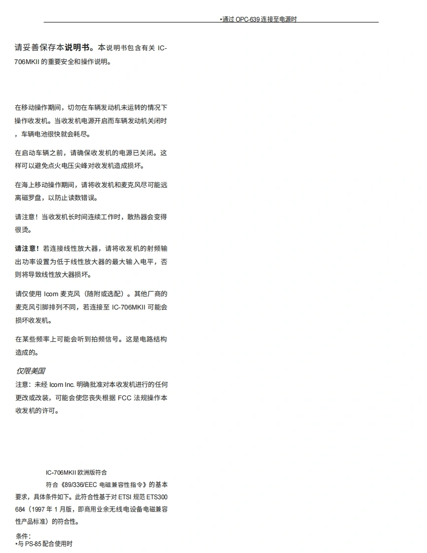 艾可慕ICOM-706-manual操作说明书手册20260331中文版找手册网3天前发布关注私信16.92MB127页020艾可慕ICOM-706-manual操作说明书手册20260331中文版此内容为付费资源,请付费后查看¥19¥21黄金会员免费钻石会员免费登录购买付费资源 第1页 / 共127页 第2页 / 共127页 第3页 / 共127页 第4页 / 共127页 第5页 / 共127页 第6页 / 共127页 第7页 / 共127页 第8页 / 共127页 第9页 / 共127页 第10页 / 共127页 试读已结束,还剩117页,您可下载完整版后进行离线阅读 THE END艾可慕 文本预览 COMINSTRUCTION MANUALHFNHF收发机IG-¥DOMKO3风95.786H·SPLA/B本设备符合美国联邦通信委员会(FCC)规则第15翻分的规定。使用本设备须遵守以下两项条件:()本设备不得造成有害干扰;(②本设备必须接受任何干扰,包括可能导致意外运行的干扰。 查看更多 收起部分 喜欢就支持一下吧收藏