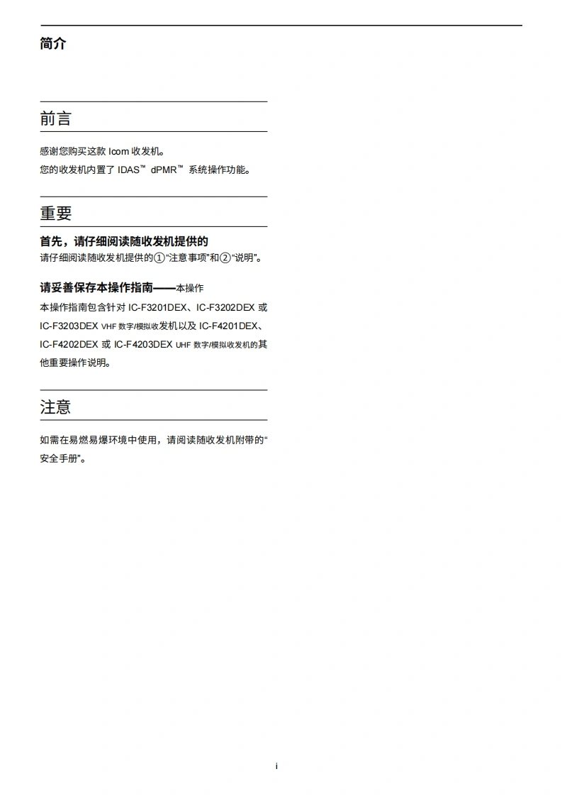 艾可慕Icom-IC-F3202DEX-操作说明书手册.pdf20260331中文版找手册网3天前发布关注私信2.43MB40页035艾可慕Icom-IC-F3202DEX-操作说明书手册.pdf20260331中文版此内容为付费资源,请付费后查看¥19¥21黄金会员免费钻石会员免费登录购买付费资源 第1页 / 共40页 第2页 / 共40页 第3页 / 共40页 第4页 / 共40页 第5页 / 共40页 第6页 / 共40页 第7页 / 共40页 第8页 / 共40页 第9页 / 共40页 第10页 / 共40页 试读已结束,还剩30页,您可下载完整版后进行离线阅读 THE END艾可慕 文本预览 COM▣a三COM DIGITRL ADVANCED SYSTETMd2ng操作说明简介附件2面板说明3基本操作4dPMRTM操作VHF数字模拟收发机iF3200DEX5扬声器麦克风系列UHF数字/模拟收发器iF42OOD三X系列 查看更多 收起部分 喜欢就支持一下吧收藏