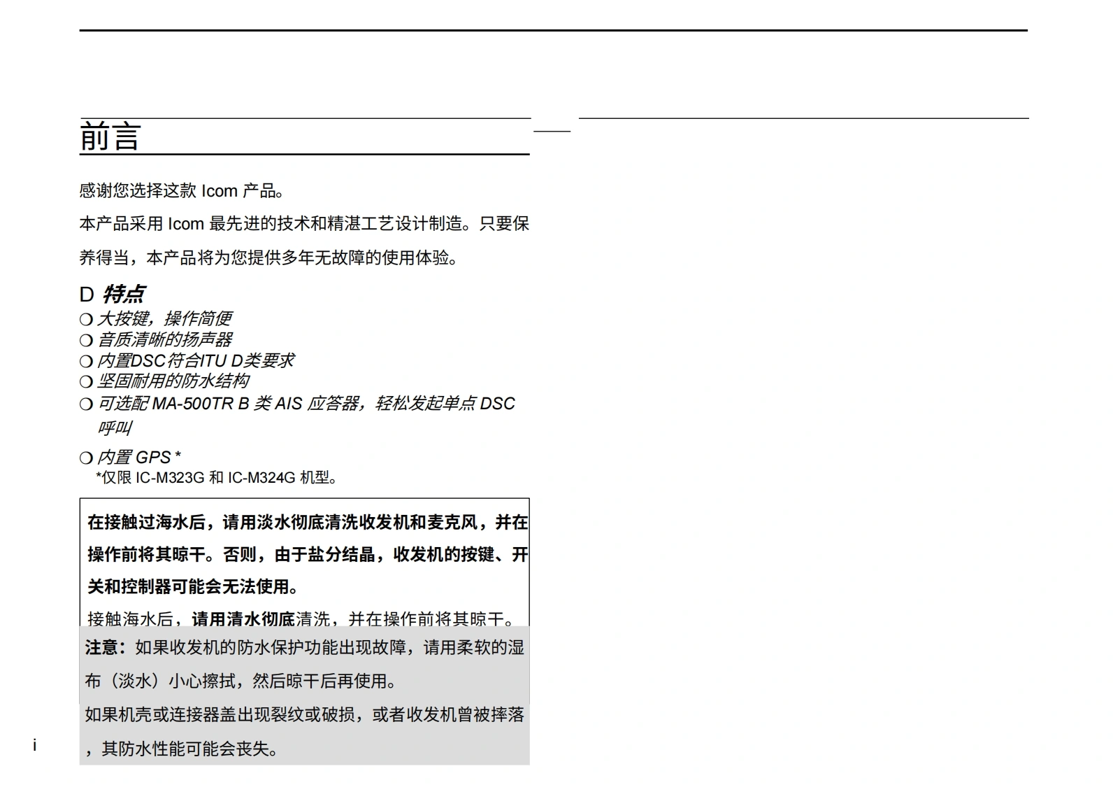 艾可慕icom-ic-m323-user-guide操作说明书手册20260331中文版找手册网3天前发布关注私信4.37MB182页035艾可慕icom-ic-m323-user-guide操作说明书手册20260331中文版此内容为付费资源,请付费后查看¥19¥21黄金会员免费钻石会员免费登录购买付费资源 第1页 / 共182页 第2页 / 共182页 第3页 / 共182页 第4页 / 共182页 第5页 / 共182页 第6页 / 共182页 第7页 / 共182页 第8页 / 共182页 第9页 / 共182页 第10页 / 共182页 试读已结束,还剩172页,您可下载完整版后进行离线阅读 THE END艾可慕 文本预览 COM使用说明书VHF船用收发机iM323iM323GiM324COMVHF MARINE IC-M324G SiM324G25W USA16ENTCALLINGMENU CLEAR本设备符合FCC规则第15部分的规定。使用本SCANT DW■HILO@HWRTRES60设备须确保不会造成有害干扰。 查看更多 收起部分 喜欢就支持一下吧收藏