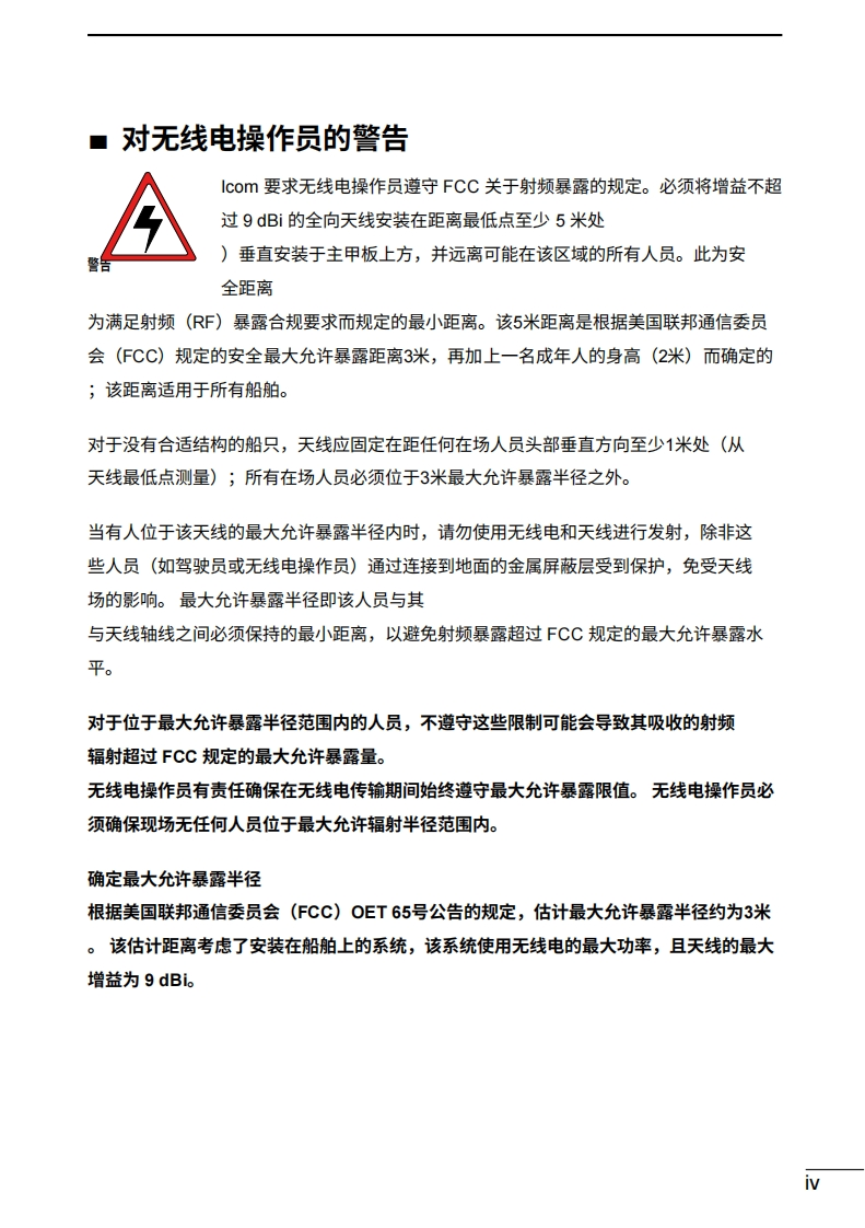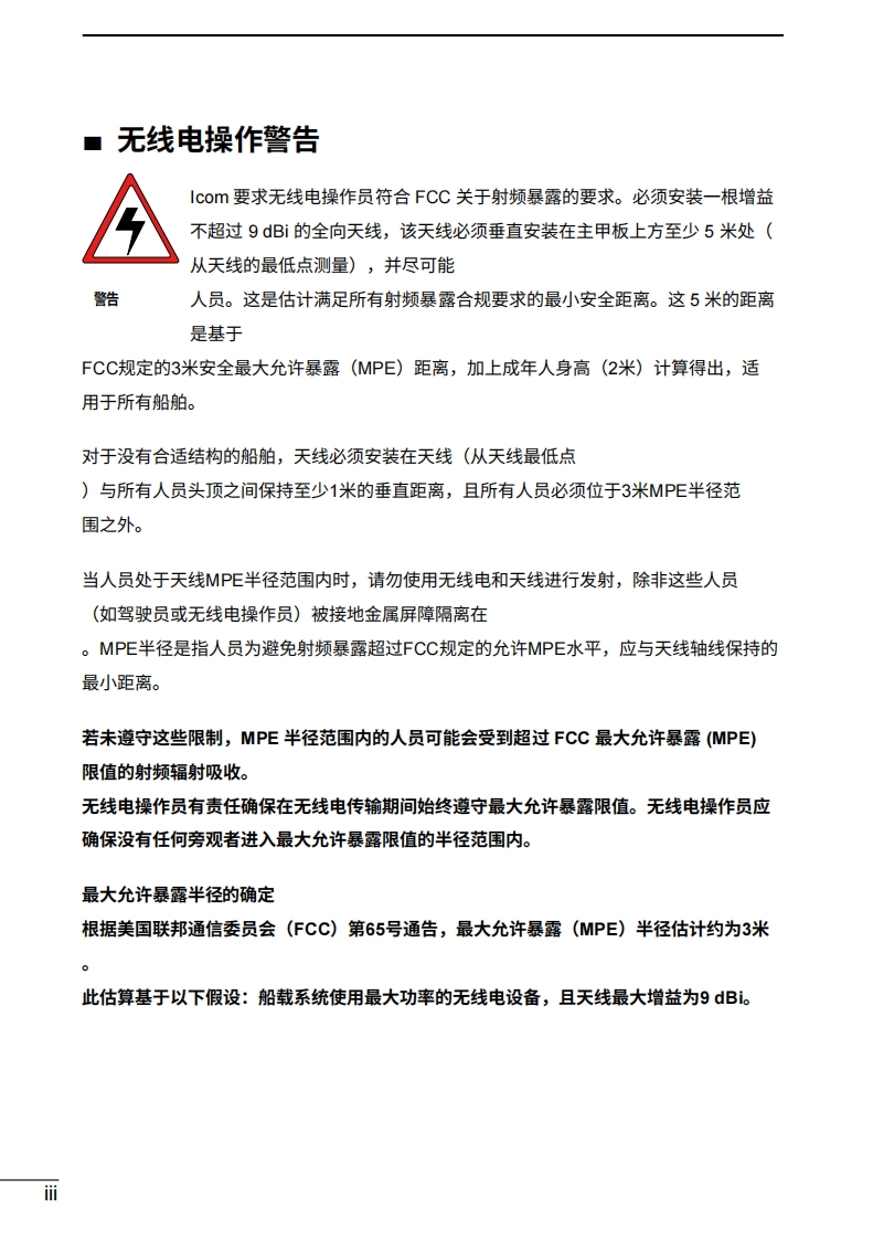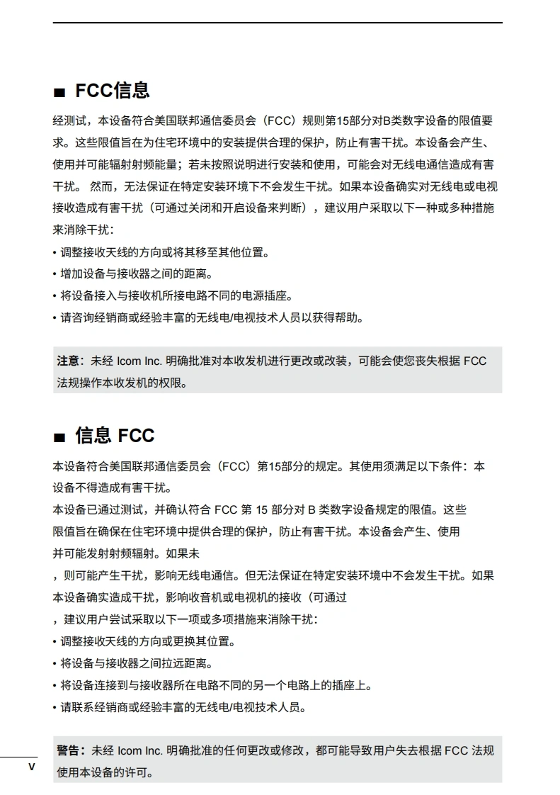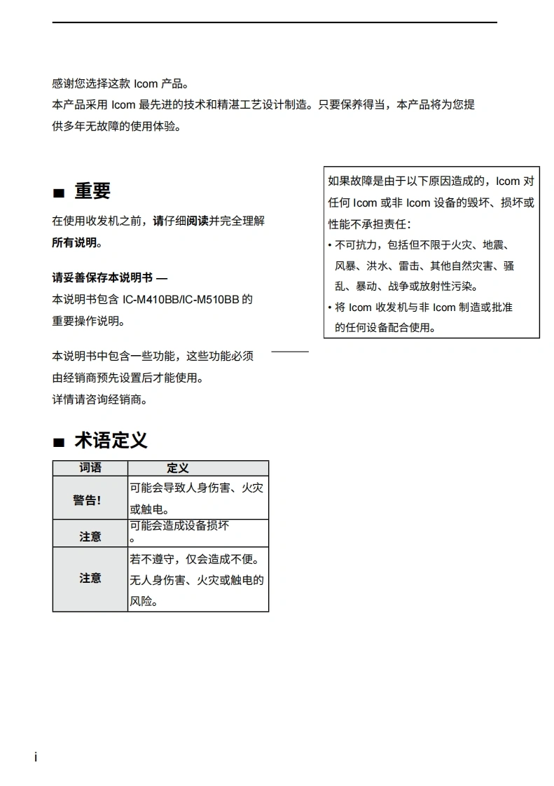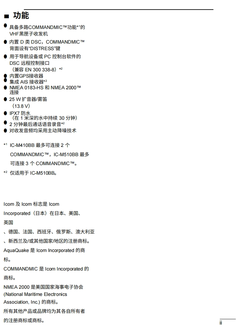 艾可慕icom-ic-m410bb-user-manual操作说明书手册-en20260331中文版找手册网3天前发布关注私信3.41MB192页023艾可慕icom-ic-m410bb-user-manual操作说明书手册-en20260331中文版此内容为付费资源,请付费后查看¥19¥21黄金会员免费钻石会员免费登录购买付费资源 第1页 / 共192页 第2页 / 共192页 第3页 / 共192页 第4页 / 共192页 第5页 / 共192页 第6页 / 共192页 第7页 / 共192页 第8页 / 共192页 第9页 / 共192页 第10页 / 共192页 试读已结束,还剩182页,您可下载完整版后进行离线阅读 THE END艾可慕 文本预览 COM使用说明书VHF船用收发机M410BBIM510BB1616图中所示为IC-M510BB。该收发机随附一个COMMANDMIC TM。本设备符合FCC规则第15部分的规定。使用本设备须确保不会造成有害干扰。 查看更多 收起部分 喜欢就支持一下吧收藏