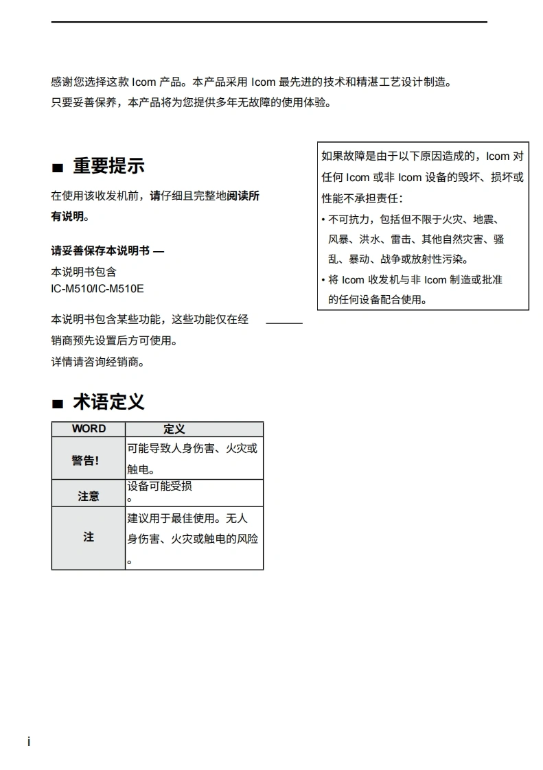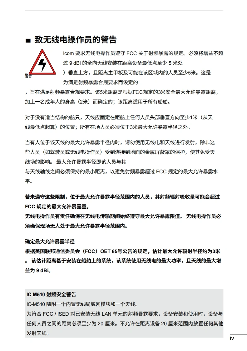 艾可慕ICOM-IC-M510-User-Manual操作说明书手册-En20260331中文版找手册网3天前发布关注私信9.35MB222页041艾可慕ICOM-IC-M510-User-Manual操作说明书手册-En20260331中文版此内容为付费资源,请付费后查看¥19¥21黄金会员免费钻石会员免费登录购买付费资源 第1页 / 共222页 第2页 / 共222页 第3页 / 共222页 第4页 / 共222页 第5页 / 共222页 第6页 / 共222页 第7页 / 共222页 第8页 / 共222页 第9页 / 共222页 第10页 / 共222页 试读已结束,还剩212页,您可下载完整版后进行离线阅读 THE END艾可慕 文本预览 使用说明书VHF船用收发机M510●|M510E16EVO本设备符合美国联邦通信委员会(FCC)规则第15部分的规定。使用本设备须确保不会造成有害干扰Icom Inc. 查看更多 收起部分 喜欢就支持一下吧收藏