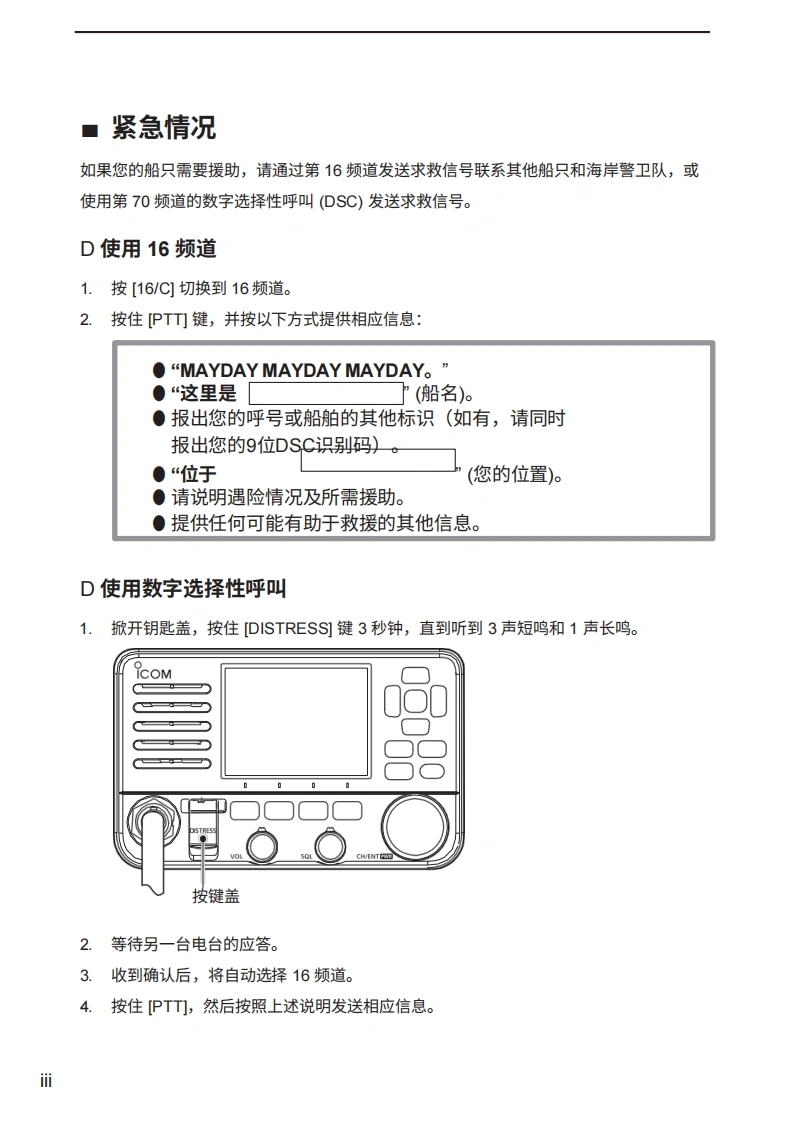 艾可慕icom-ic-m510-vhf-dsc-marine-radio-ais-instruction-操作说明书手册_120260331中文版找手册网3天前发布关注私信9.04MB208页034艾可慕icom-ic-m510-vhf-dsc-marine-radio-ais-instruction-操作说明书手册_120260331中文版此内容为付费资源,请付费后查看¥19¥21黄金会员免费钻石会员免费登录购买付费资源 第1页 / 共208页 第2页 / 共208页 第3页 / 共208页 第4页 / 共208页 第5页 / 共208页 第6页 / 共208页 第7页 / 共208页 第8页 / 共208页 第9页 / 共208页 第10页 / 共208页 试读已结束,还剩198页,您可下载完整版后进行离线阅读 THE END艾可慕 文本预览 COM使用说明书VHF船用收发机IM51016本设备符合美国联邦通信委员会(FCC)规则第15部分的规定。使用本设备须确保不会造成有害干扰Icom Inc. 查看更多 收起部分 喜欢就支持一下吧收藏