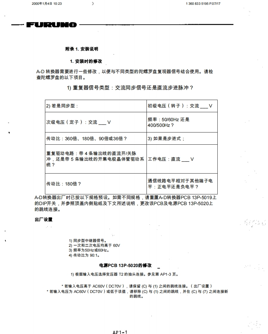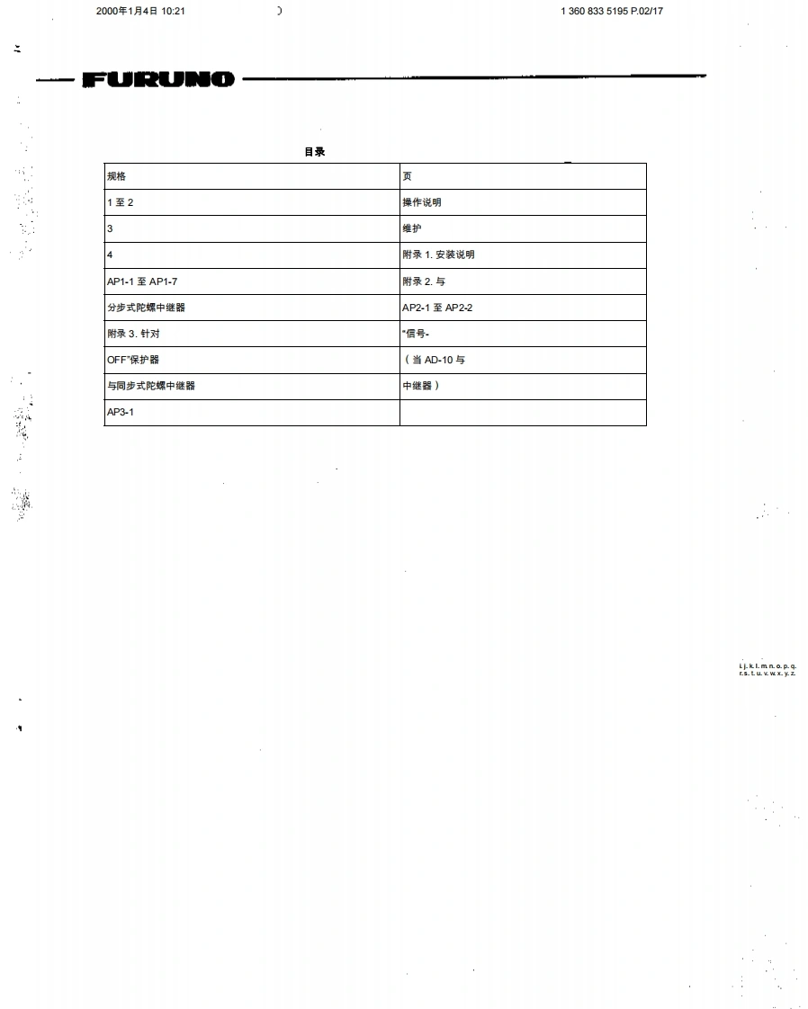 日本古野FURUNO-ad10_安装调试说明书手册-20260409中文版找手册网3天前发布关注私信2.81MB17页035日本古野FURUNO-ad10_安装调试说明书手册-20260409中文版此内容为付费资源,请付费后查看¥19¥21黄金会员免费钻石会员免费登录购买付费资源 第1页 / 共17页 第2页 / 共17页 第3页 / 共17页 第4页 / 共17页 第5页 / 共17页 第6页 / 共17页 第7页 / 共17页 第8页 / 共17页 第9页 / 共17页 第10页 / 共17页 试读已结束,还剩7页,您可下载完整版后进行离线阅读 THE ENDCobra/Furuno 文本预览 TAN-04-200010:2113608335195P.01/17编号:OM-E4248-UHJ1日期:1982年11月FURUNO操作手册A-D转换器型号AD-IOFURUNO ELECTRIC CO.,LTD日本西宫市821120Y 查看更多 收起部分 喜欢就支持一下吧收藏