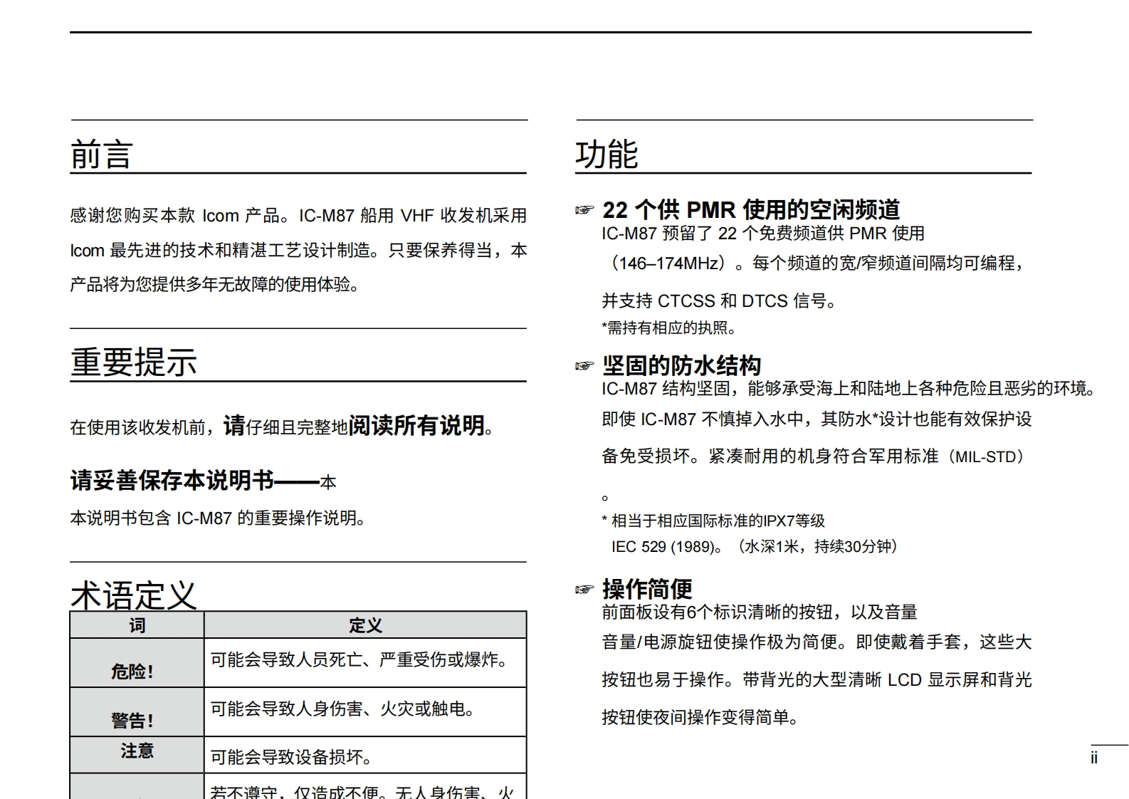 艾可慕icom-ic-m87-user-guide操作说明书手册20260331中文版找手册网3天前发布关注私信3.71MB70页039艾可慕icom-ic-m87-user-guide操作说明书手册20260331中文版此内容为付费资源,请付费后查看¥19¥21黄金会员免费钻石会员免费登录购买付费资源 第1页 / 共70页 第2页 / 共70页 第3页 / 共70页 第4页 / 共70页 第5页 / 共70页 第6页 / 共70页 第7页 / 共70页 第8页 / 共70页 第9页 / 共70页 第10页 / 共70页 试读已结束,还剩60页,您可下载完整版后进行离线阅读 THE END艾可慕 文本预览 使用说明书VHF船用收发机iM87WATER RESISTANT。6IC-M87DUADIALSCNLOCKH/LCOMIcom Inc. 查看更多 收起部分 喜欢就支持一下吧收藏
