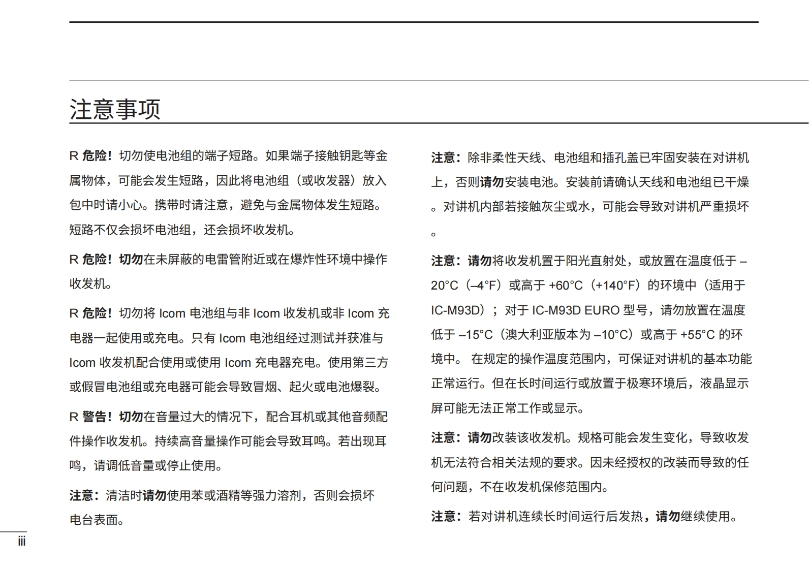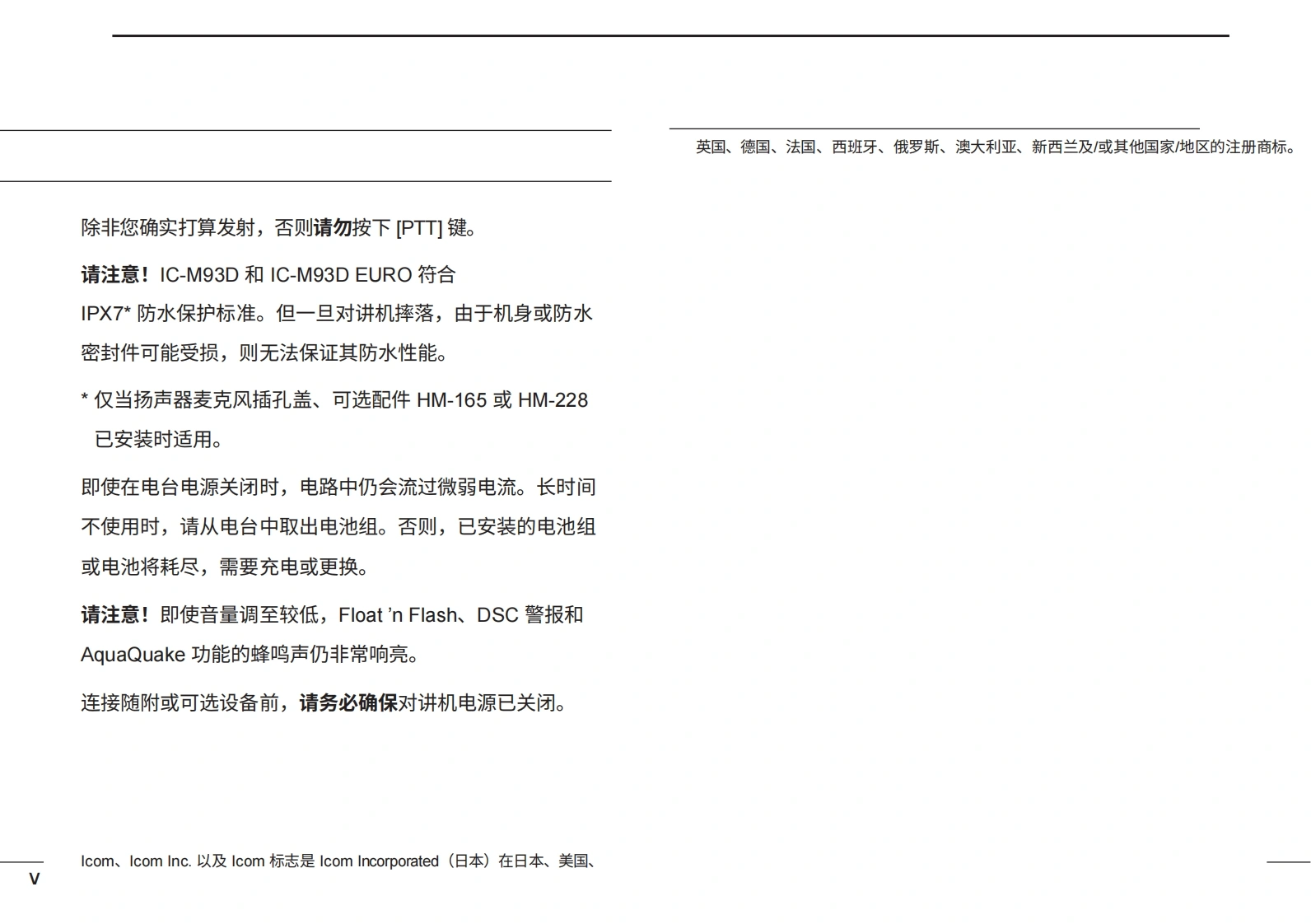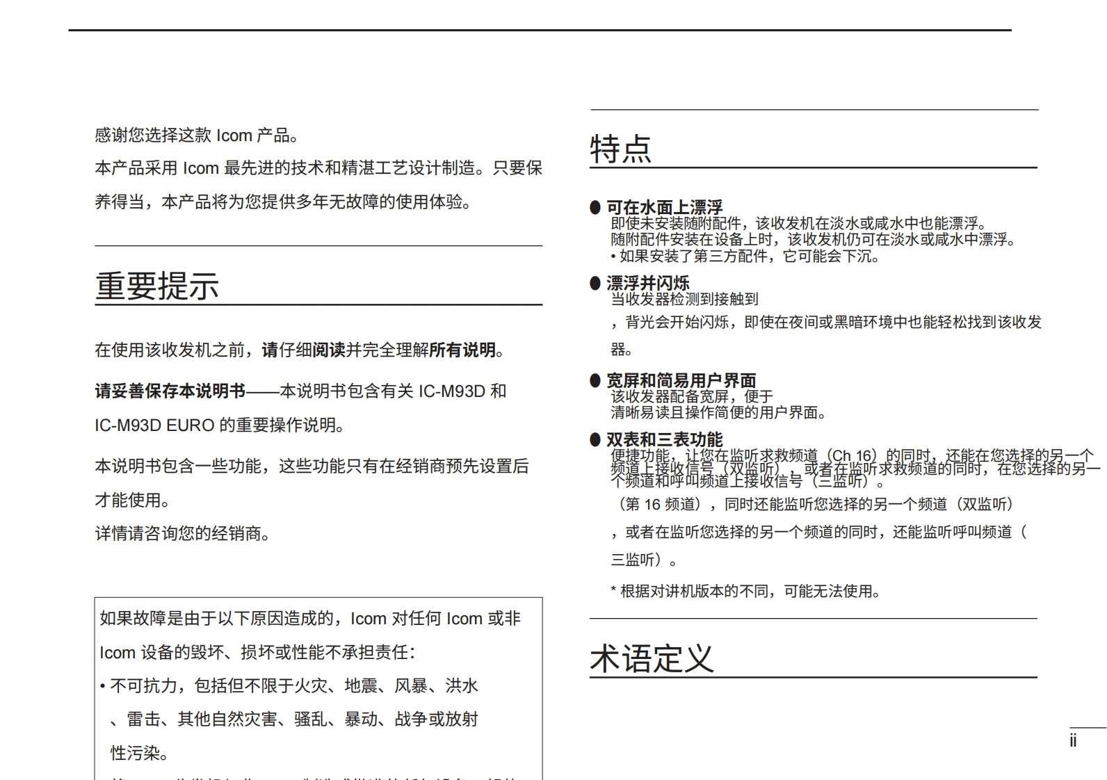 艾可慕ICOMIC-M93D英文用户操作手册指南20260331中文版找手册网3天前发布关注私信4.66MB157页029艾可慕ICOMIC-M93D英文用户操作手册指南20260331中文版此内容为付费资源,请付费后查看¥19¥21黄金会员免费钻石会员免费登录购买付费资源 第1页 / 共157页 第2页 / 共157页 第3页 / 共157页 第4页 / 共157页 第5页 / 共157页 第6页 / 共157页 第7页 / 共157页 第8页 / 共157页 第9页 / 共157页 第10页 / 共157页 试读已结束,还剩147页,您可下载完整版后进行离线阅读 THE END艾可慕 文本预览 COM使用说明书VHF船用收发机iM93DiM93DEUROC-93其16CALLINGDTRS OUHER LOG本设备符合FCC规则第15部分的规定。使用本设备须确保不会造成有害干扰。 查看更多 收起部分 喜欢就支持一下吧收藏